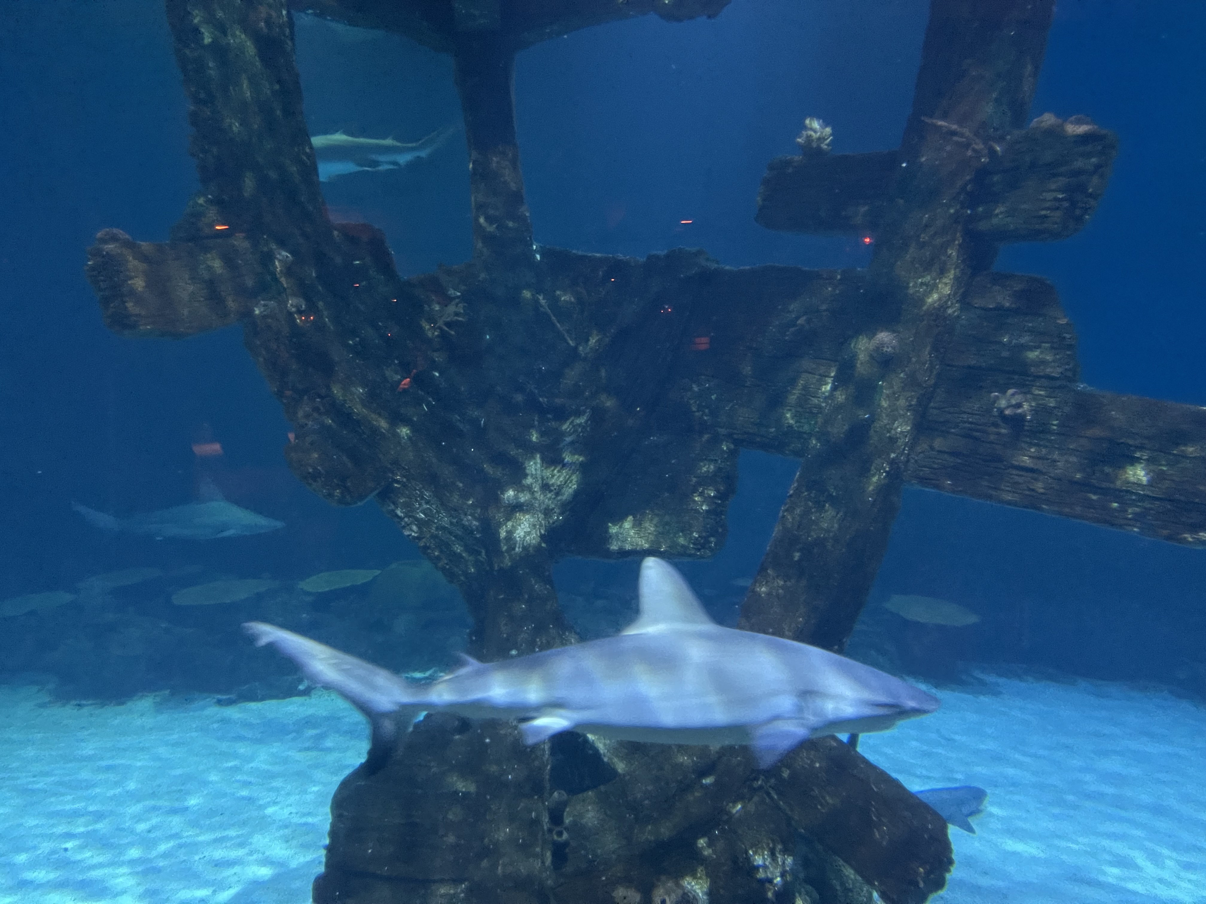 中午吃完午饭之后回赌场休息一会顺便再玩两把。当然Mandalay Bay的水族馆Shark Reef Aquarium也是一直想去这次正好用MyVegas刷到了免费票就去转了一下。印象里十岁之后就再也没去过水族馆,包括全美第一大的Atlanta水族馆和第二大的Monterey水族馆都是路过了一下没有进去。而正如这个水族馆名字里所展示的,鲨鱼是这个水族馆的最大看点,在最大的水池里大约有二三十条小鲨鱼,但除此之外看点不多,大概半小时就可以逛完。还是要感叹一下能在沙漠里修水族馆的钞能力真好。