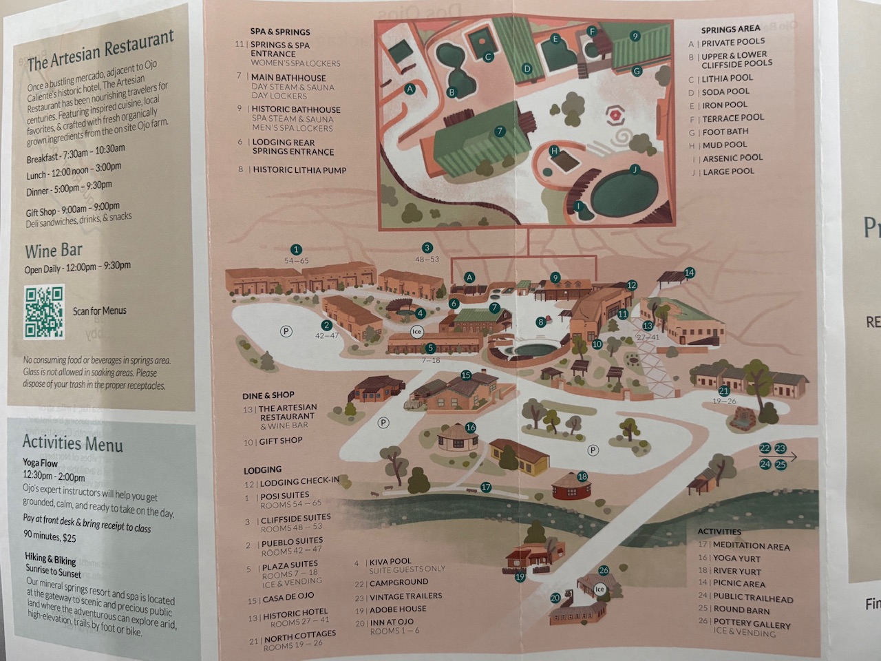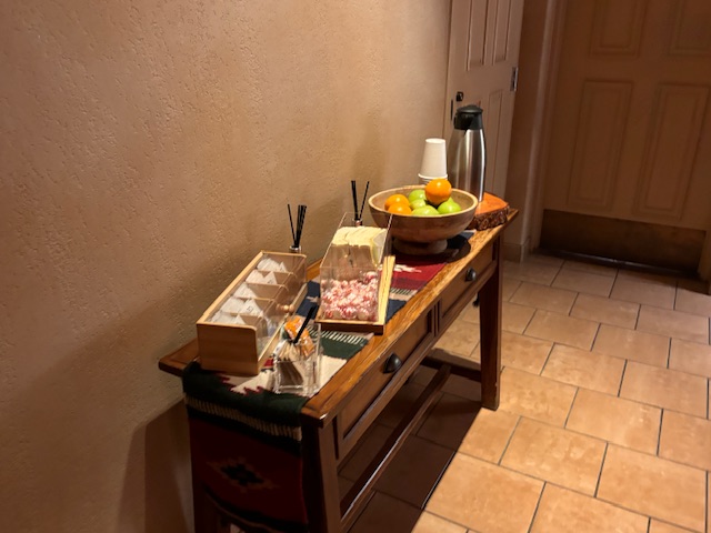 酒店的入口需要从hwy拐到一个drive上走大概1个mile,非常安静的vibe,日落的时候拍拍周边的山真的很美;虽然pueblo里是不允许有business的,但是开几mile到hwy上就有很多餐厅/快餐可选择,喜闻乐见的麦当劳KFC星巴克之流都有,所以完全不需要担心一定要在酒店吃饭/出入不方便。