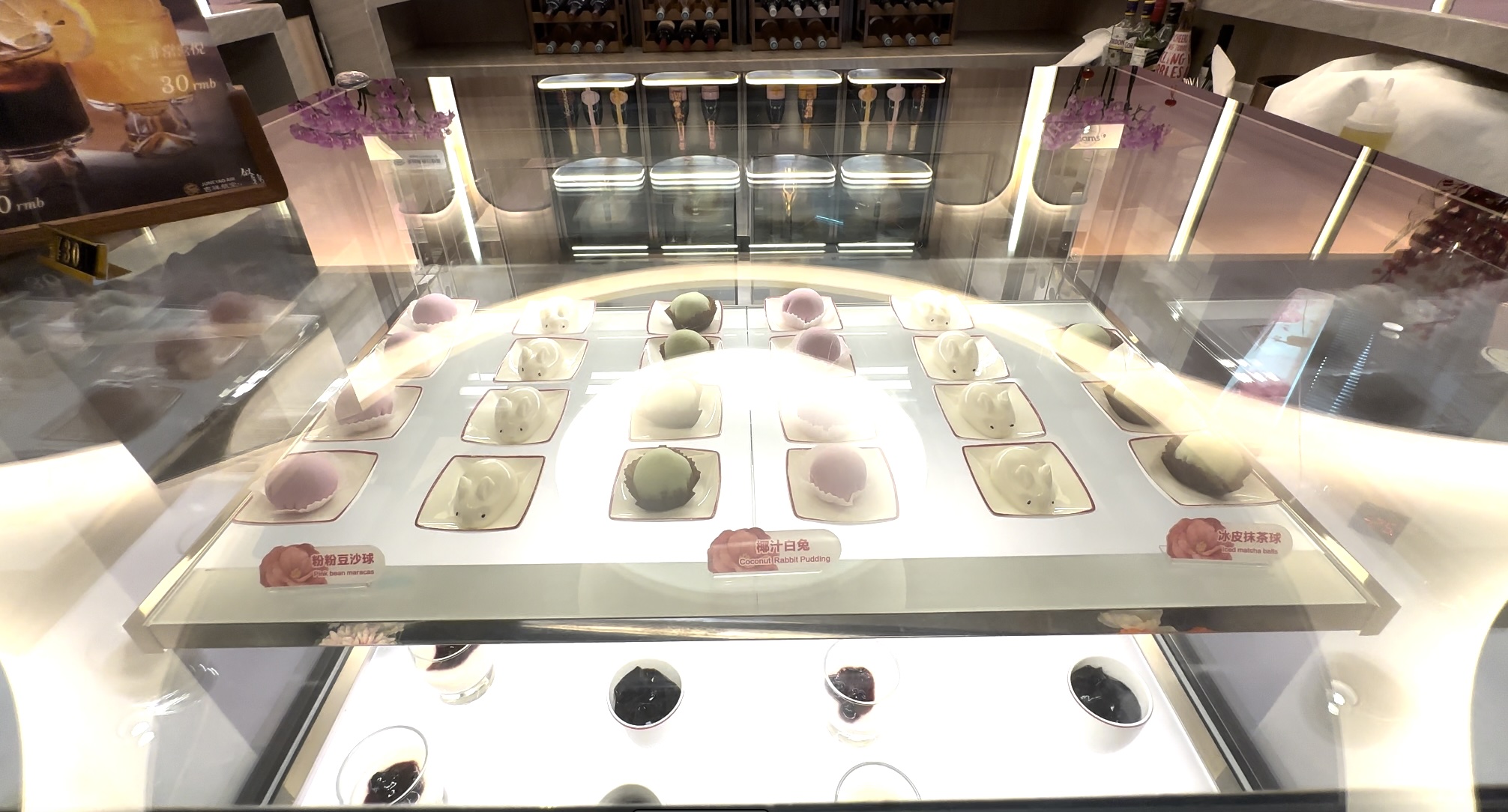 走进去几步路就是吧台,吧台里没有多少酒,我在休息室里的时候也没看到有人点酒喝,好像在国内机场休息室一般看不太到客人会在酒吧点酒喝。吧台的柜子里还放着各种颜色的日式糯米团子和甜品,这个要额外收费的,一个人民币30元