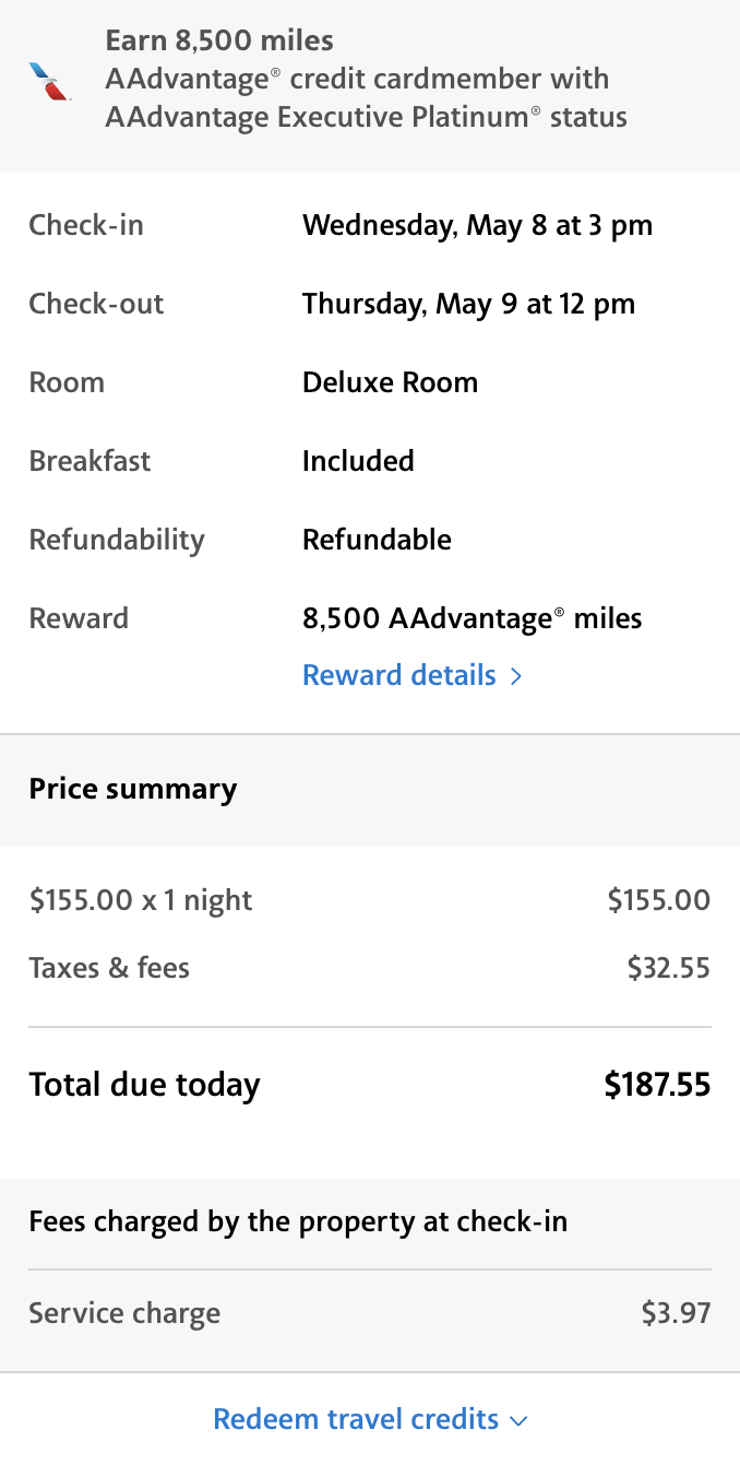 - 最重要的一点是如果空刷的话,可以不用付pay at the hotel的那一部分 (resort fee, service charge) 之类的,reward依旧可以成功post。