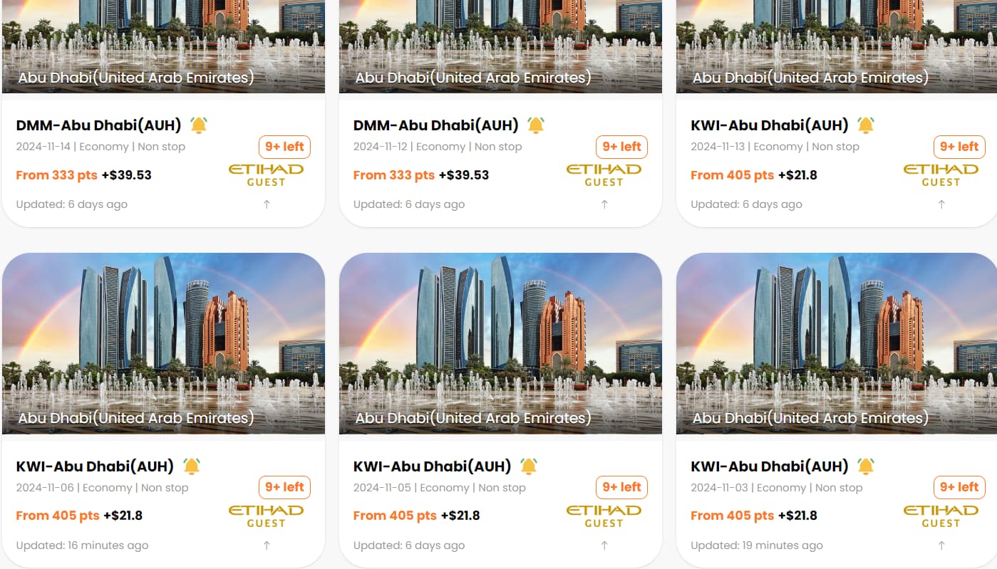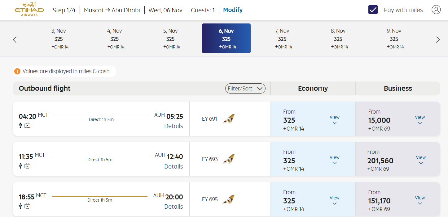 刚才无意中发现,阿提哈德常旅搜自家里程票,海湾国家之间的短途航线原来还可以有这种定价: