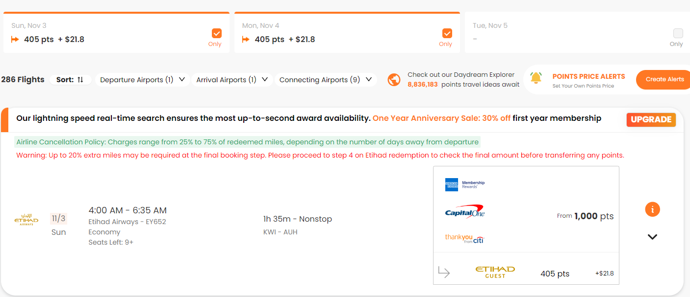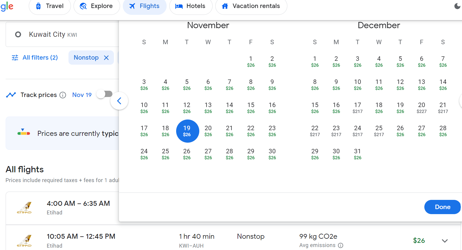 不过还是惊讶于 KWI → AUH “淡季”的时候可以卖到这么便宜。