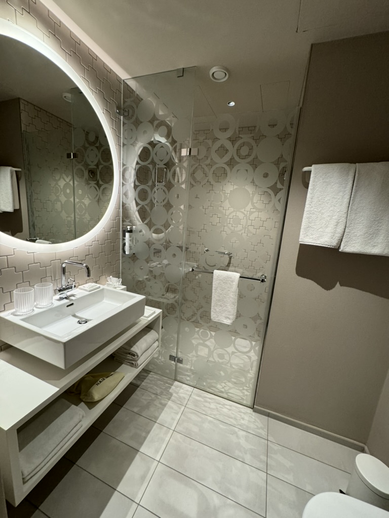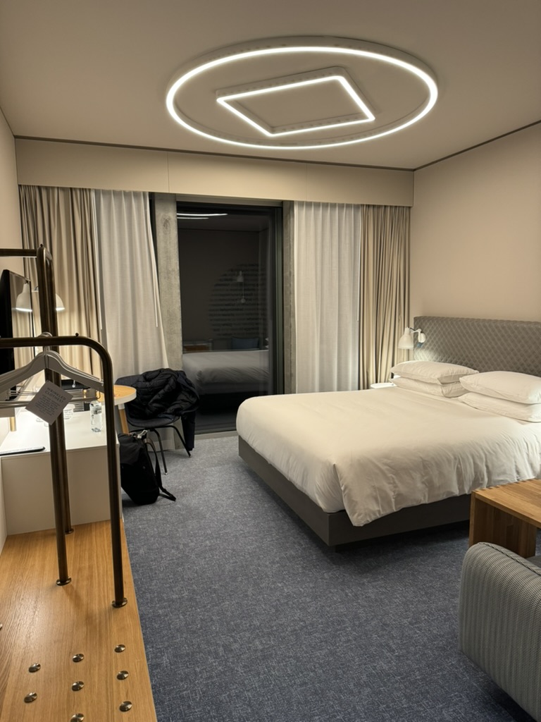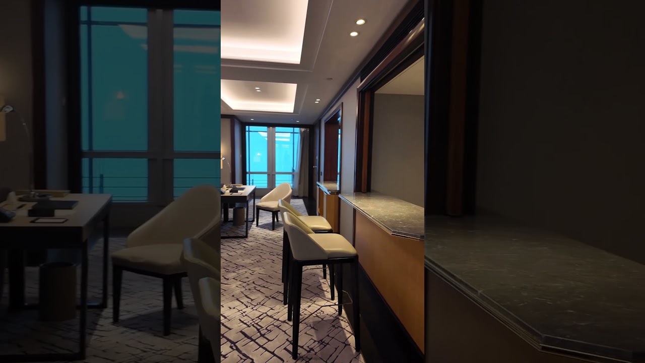 房间我拍了视频。很可惜,这个不是最好的外交官套房。有一种全是斜着玻璃的版本,会好看很多很多。