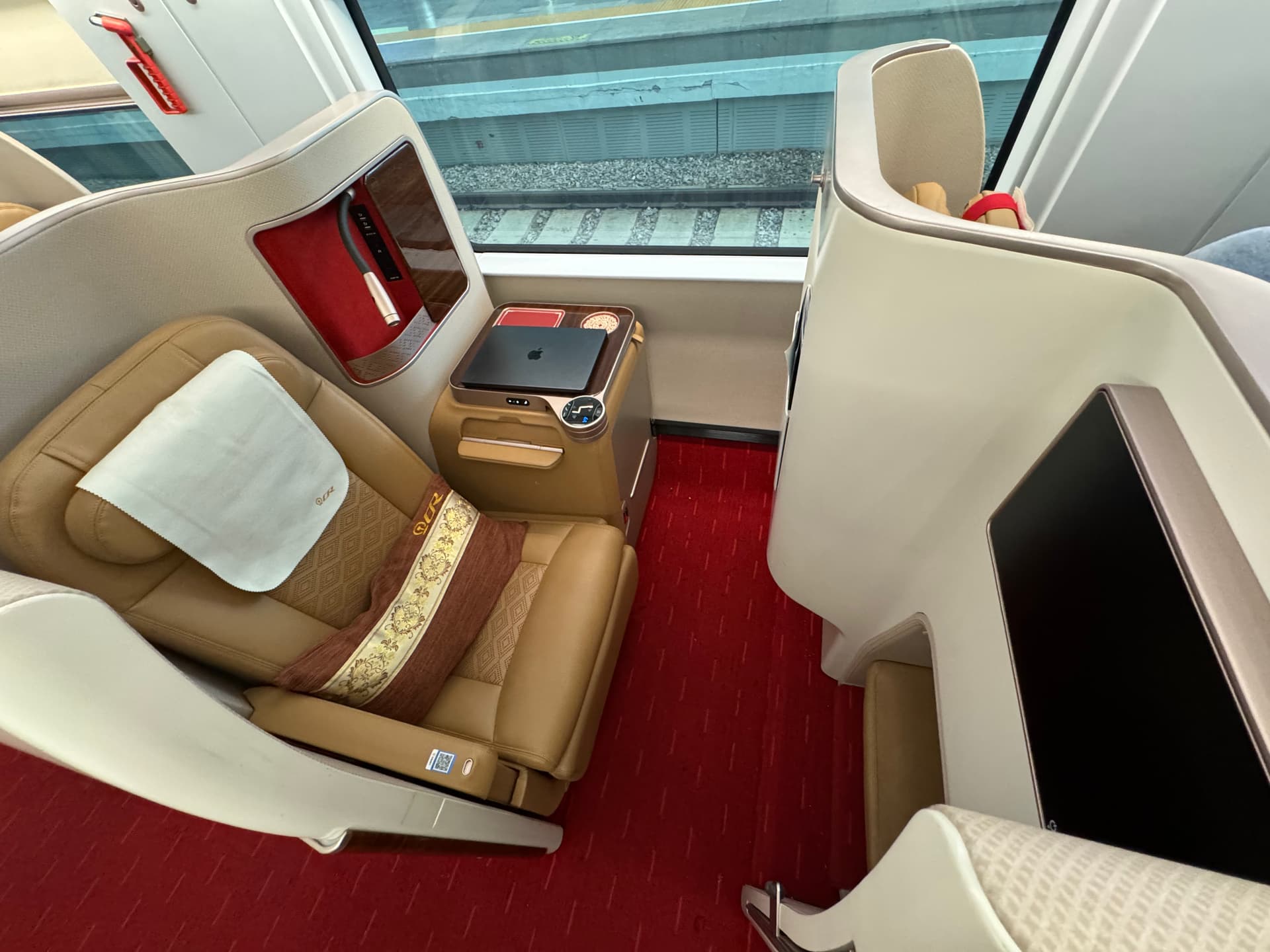 国内的商务座就三种,一种很老的(但喜欢空间的话是最好的)。之后就是CR400AF-Z的鱼骨和CR400BF-AZ的有门的suite。其中suite是绝对比那个鱼骨舒服的。而鱼骨的上次坐过。