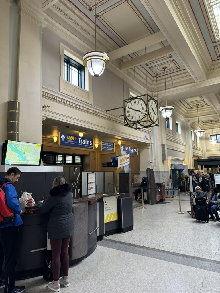 体验下跨境火车。Amtrak在Vancouver没有lounge。当天火车也迟到了2小时。