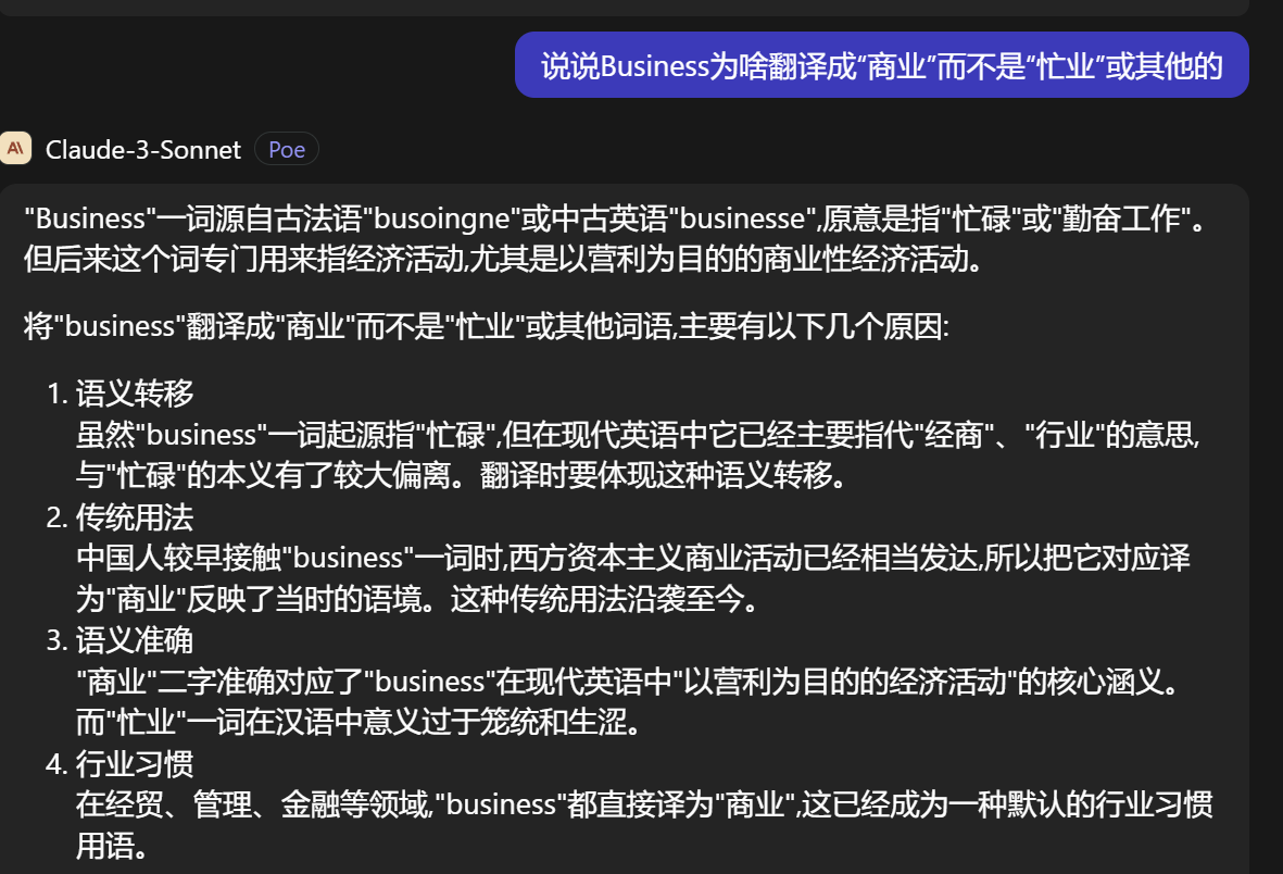 似乎没有必要因为考虑“business这个词还有别的意思”而即使在这种情况下也不把他翻译为“商业”