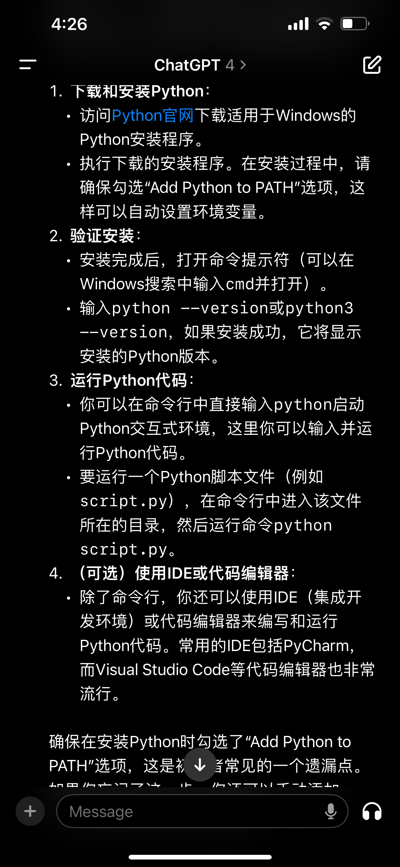 感谢。我以为复制粘贴到IDE,点击运行就好了。原来要安装Phython for windows.