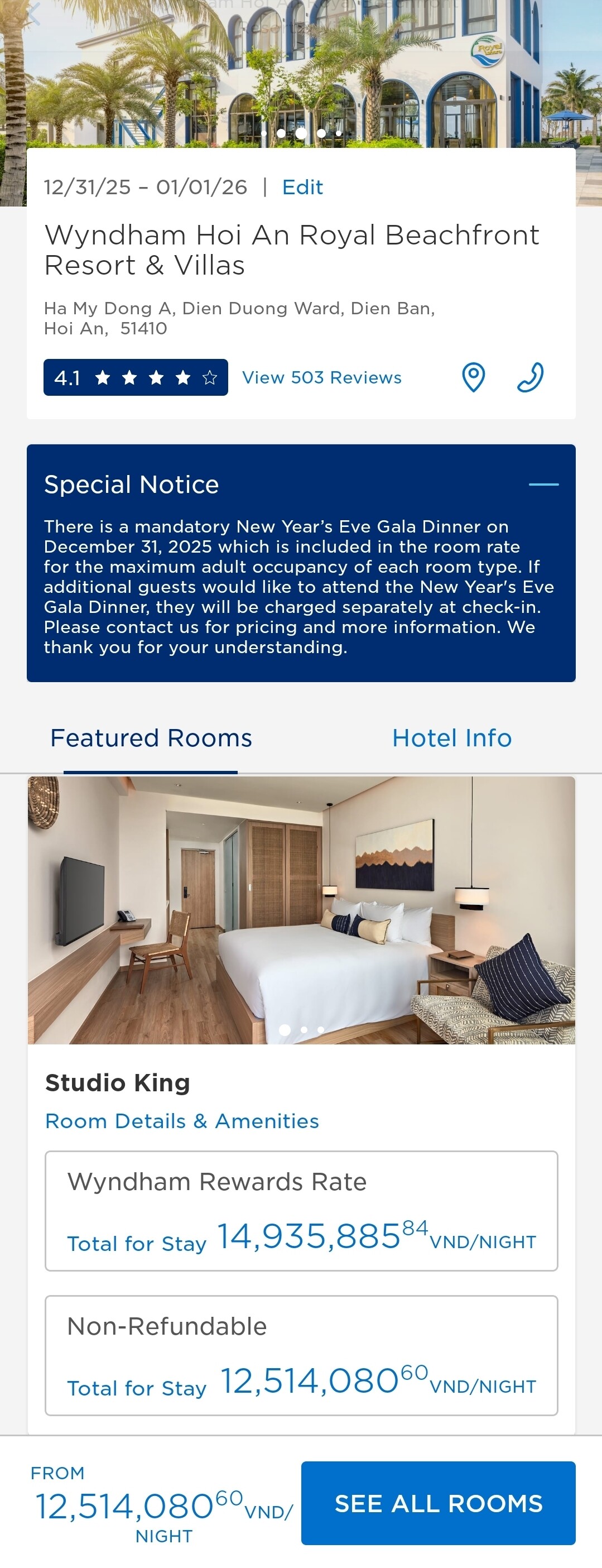 但是新年夜强制消费 Gala Dinner房费涨到500美元一晚,积分房包晚饭依然13.5k, 一下子3.5c/pt了