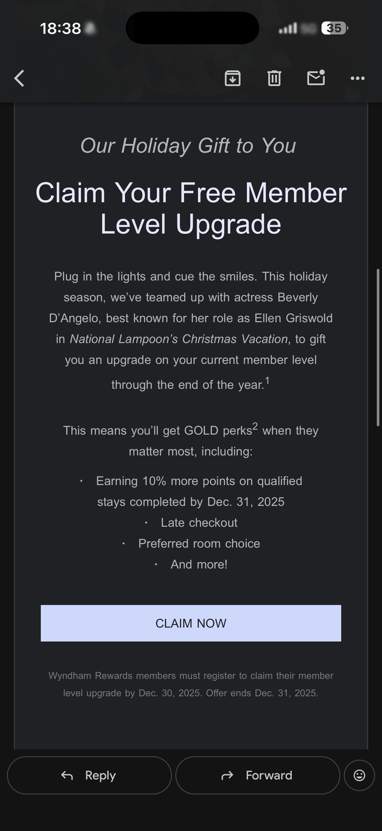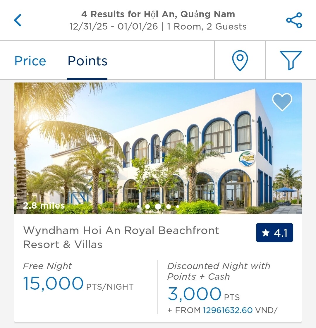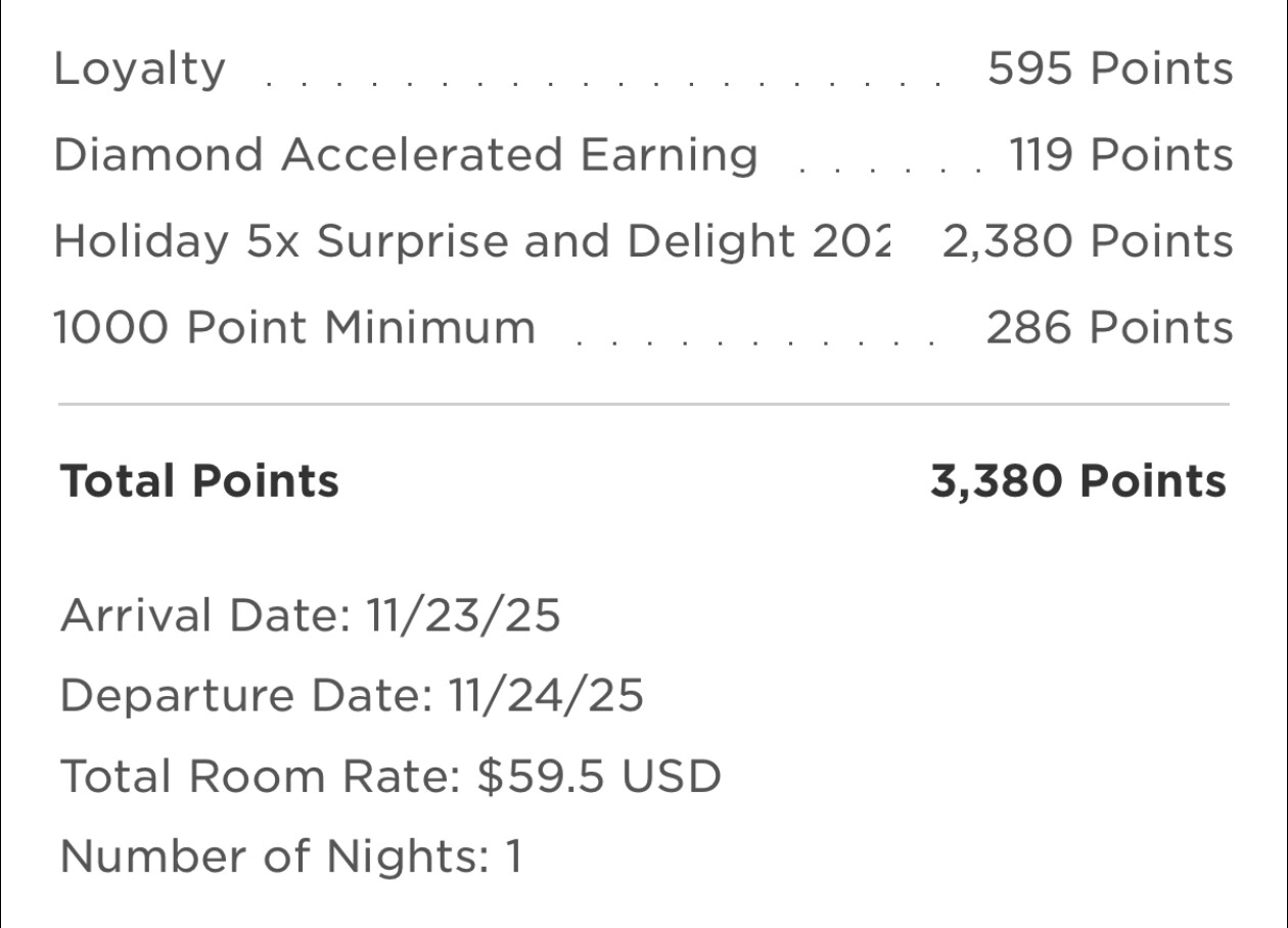 Wyndham还有个 minimum 1000 points 规则。如果我定个$50 的stay 那就是5000 分?