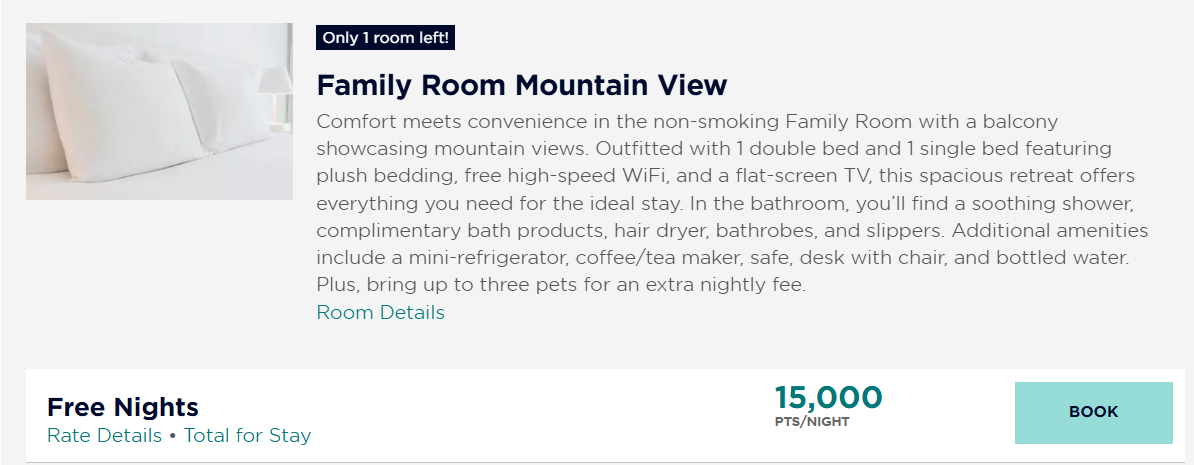 15,000 积分包括普通间和套房 (Family Room)