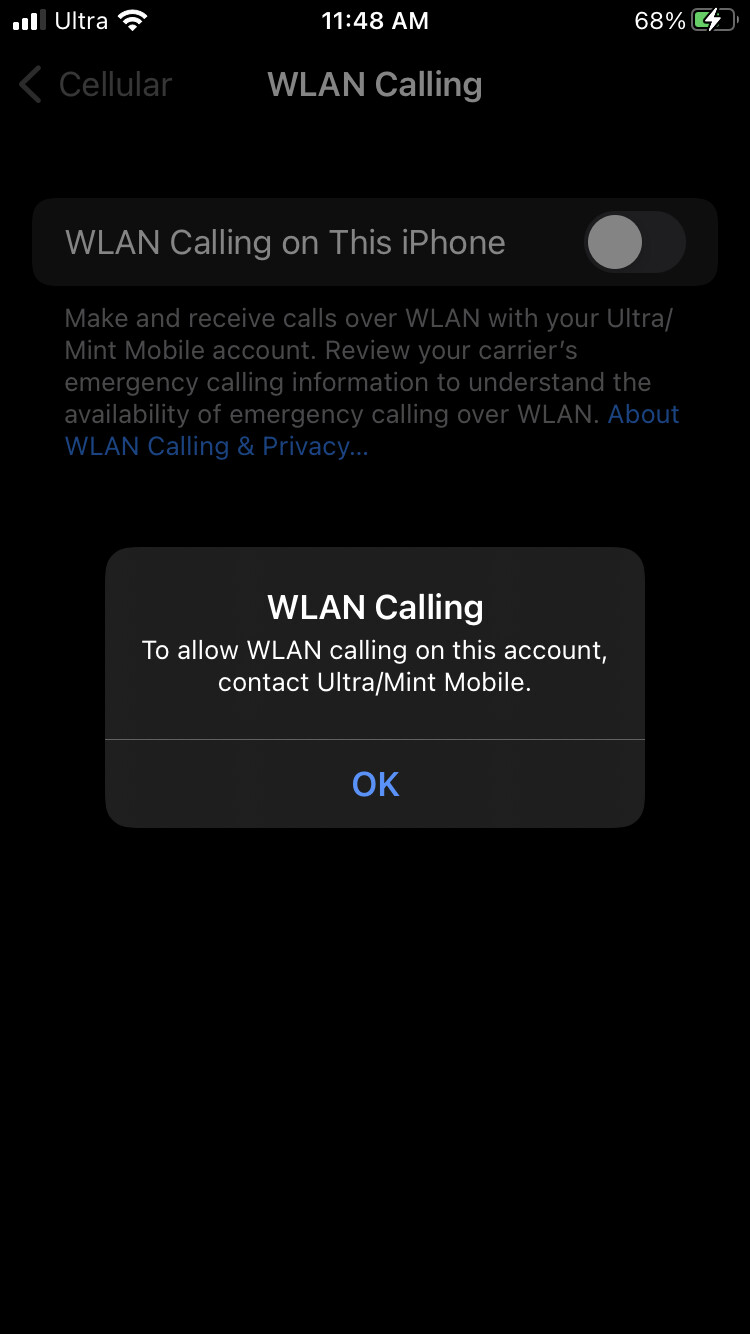 另外感觉这不是我本地wifi的问题。出差之前ultra mobile的wifi calling是随便用的,反而回美国一趟不让用了……而且我的问题是wifi calling这个开关无法打开,一般本地网络有问题都是wifi calling能打开但是不能用,并且可以保证的是也没有换手机什么的