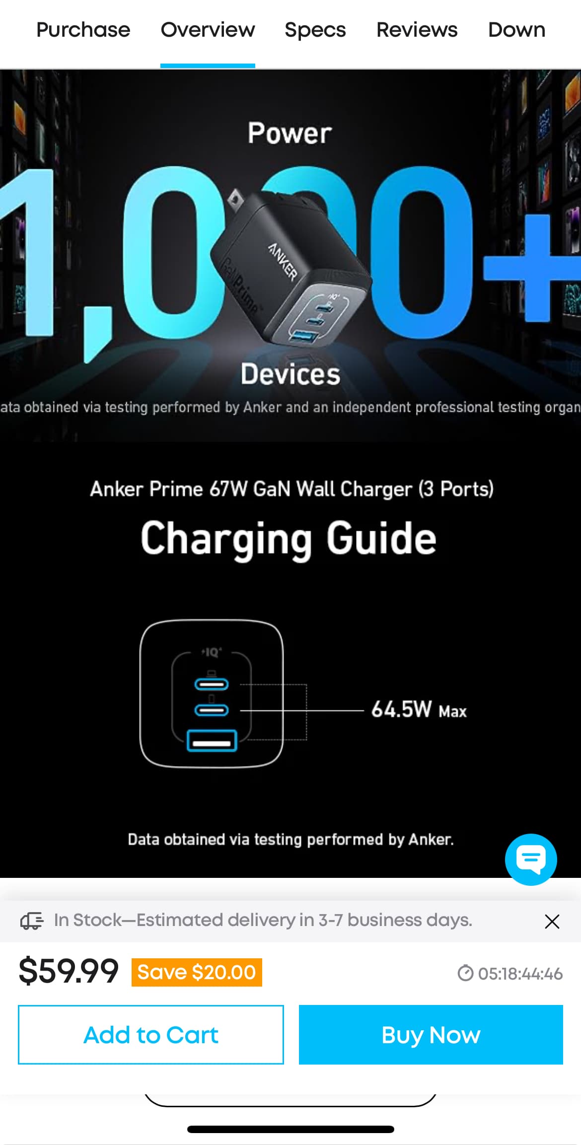 两口同时冲,USB C口会降到45W,因为最大功率才67W