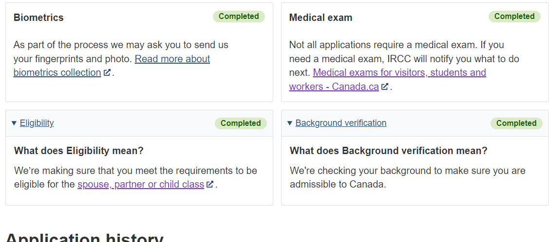 这部分的具体进度需要打电话给IRCC去问. 通常先是Criminality check, 这个很快, 主要跟能无犯罪证明有关. 然后是information-sharing, 这一步是加拿大与五眼联盟的其它国家进行信息交换, 比如在英美有出入境记录和留学记录, 都是在这一步里. 最后是Security check, 这一步由IRCC, Canada Border Services Agency (CBSA) + Canadian Security Intelligence Service (CSIS)共同完成.