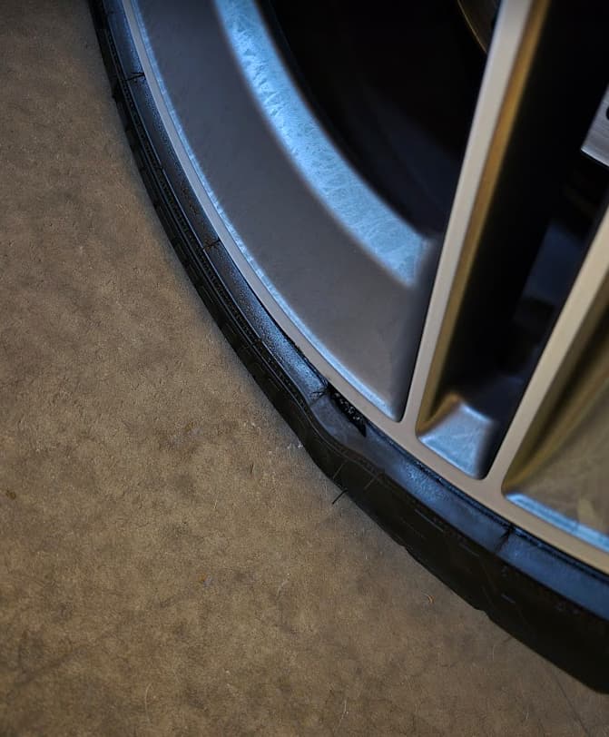前天高速上压坑了,昨天发现轮胎变成这样了,在家旁边的Costco订了新的轮胎,大概3miles距离。我在纠结新轮胎到了以后是慢慢的开过去换,还是卸下来,放一点儿气,然后开其它车送过去换轮胎。
