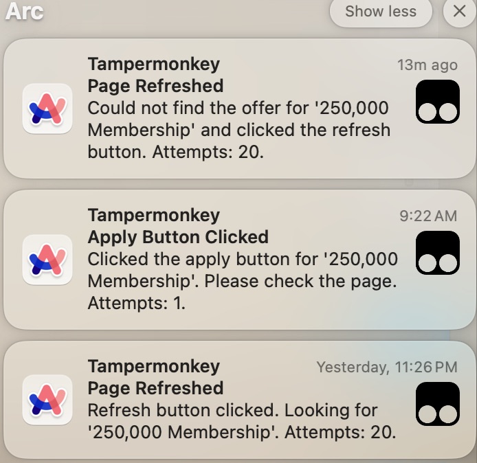 受这个帖子启发,我(chatgpt)稍微改了一下这样可以用在油猴里。做的事情时一模一样的:会查一下是否有250k,没有的话会等refresh button直到刷出250k,刷出来后会点击apply button。