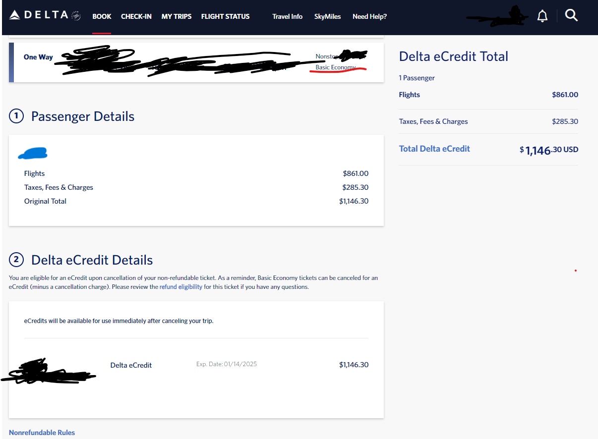 达美basic economy,中国飞美国,$1146买的,现在只要900了,想着能不能搞回差价(chase ur买的不能在达美change)。