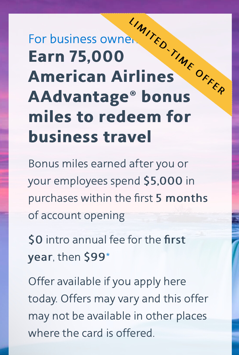 American Airlines AAdvantage® bonus miles are not available if you have received a new account bonus for a CitiBusiness® / AAdvantage® Platinum Select® or Citi® / AAdvantage Business™ World Elite Mastercard® account in the past 48 months.