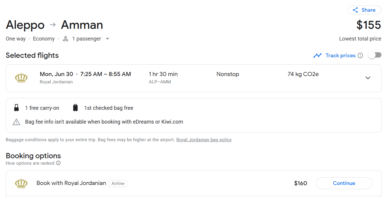 (1) 约旦航空本月复航阿勒颇 (ALP),这是近期开通的第二条约叙航线 (之前开通的是大马士革),也是内战以来首次有外国主流航司执飞阿勒颇。