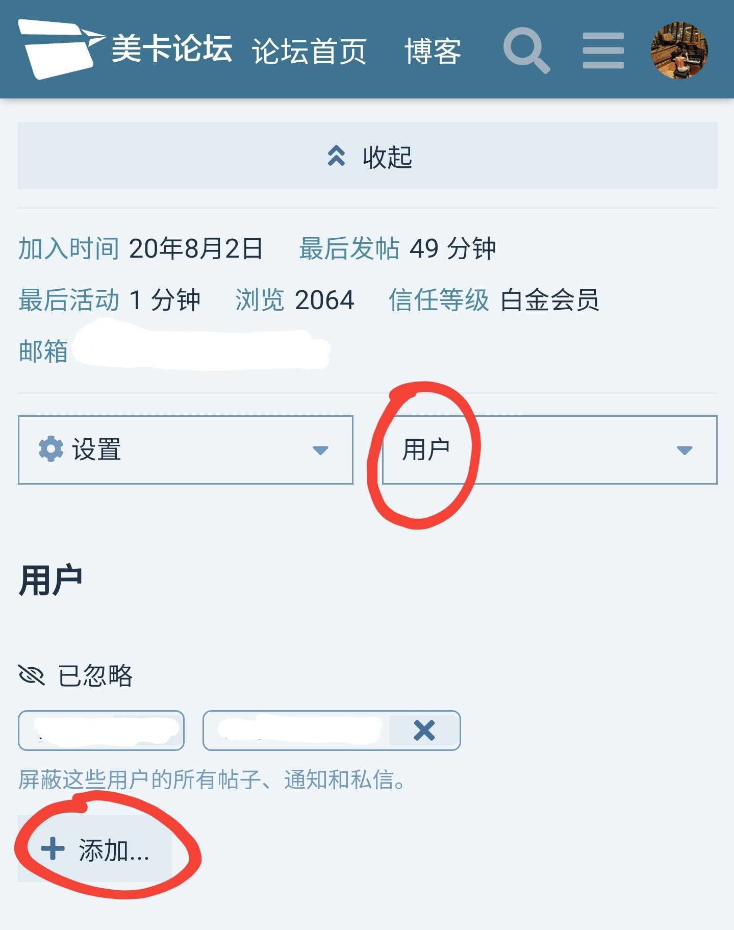 请问下,如果有的用户隐藏了个人信息,那就到不了有“普通”选项的那个页面,那要怎么拉黑呢