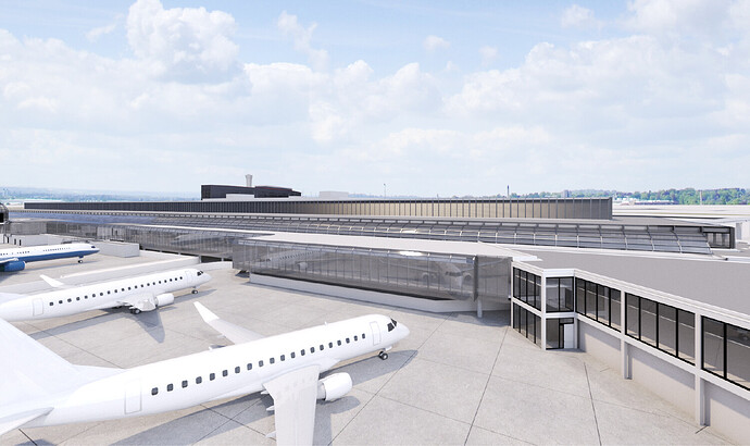 幾天前,新一輪的工程已經開工了,這部分是 Concourse D,下圖較近的這個航站樓