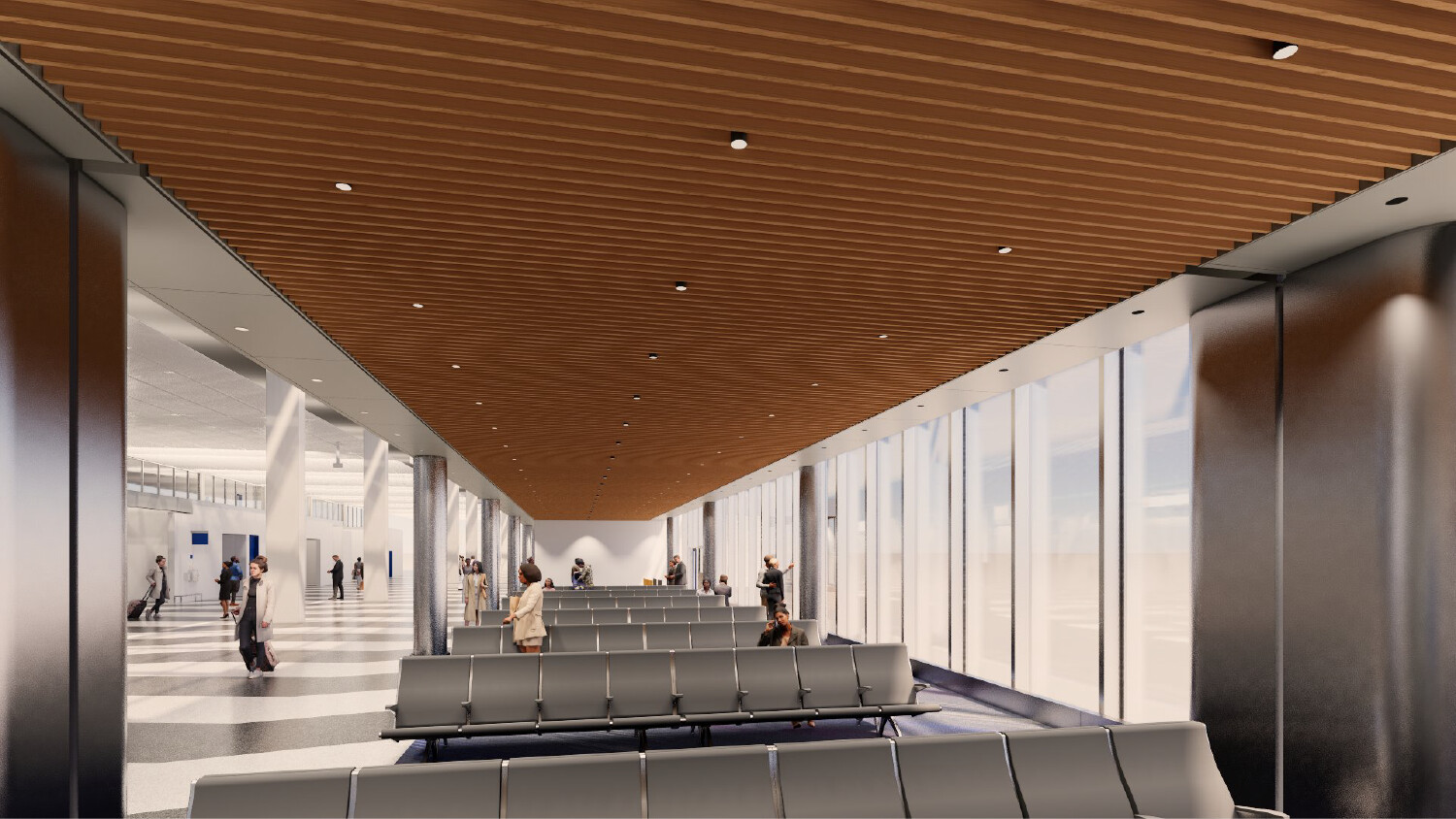 - Reconfigure the existing two TSA checkpoints into one central screening area.