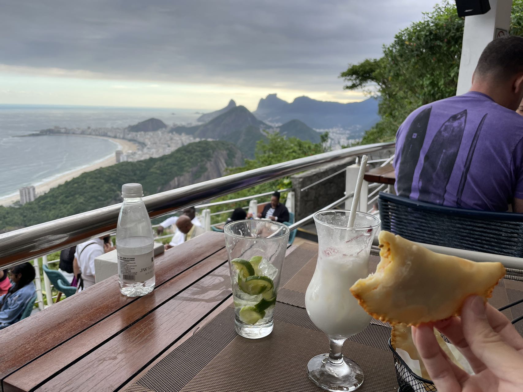 第一天不巧是阴天,于是决定把基督山和糖面包山这种户外看风景的活动排去第二天。到Hilton后房间还没打扫出来,于是先去行政酒廊蹭了个早餐,寄存好背包,去Copacabana Beach透透气。