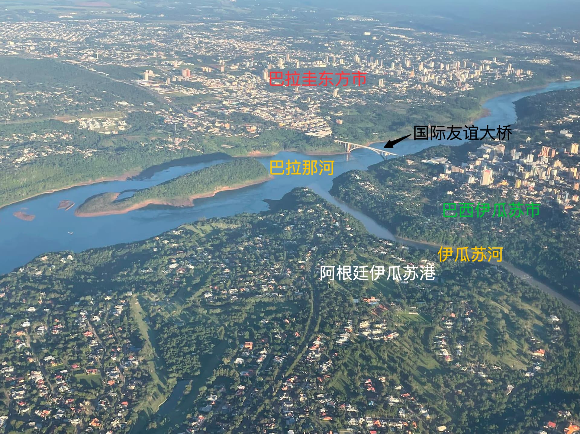 做了张图解释,伊瓜苏瀑布在伊瓜苏河上(不在图中):