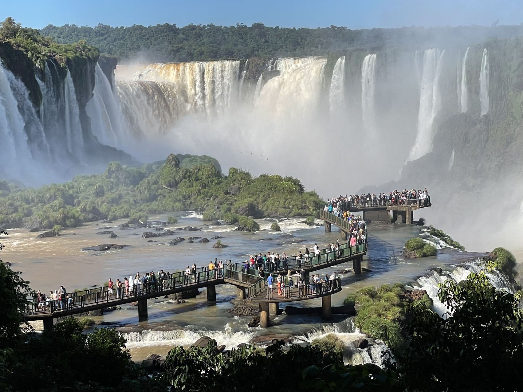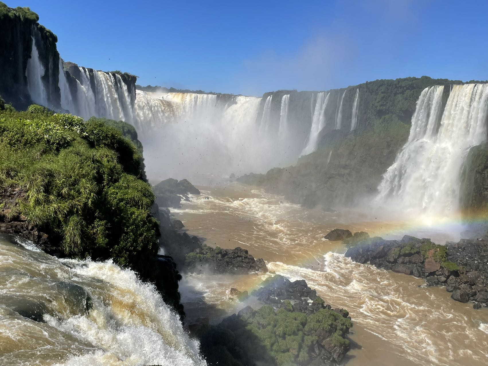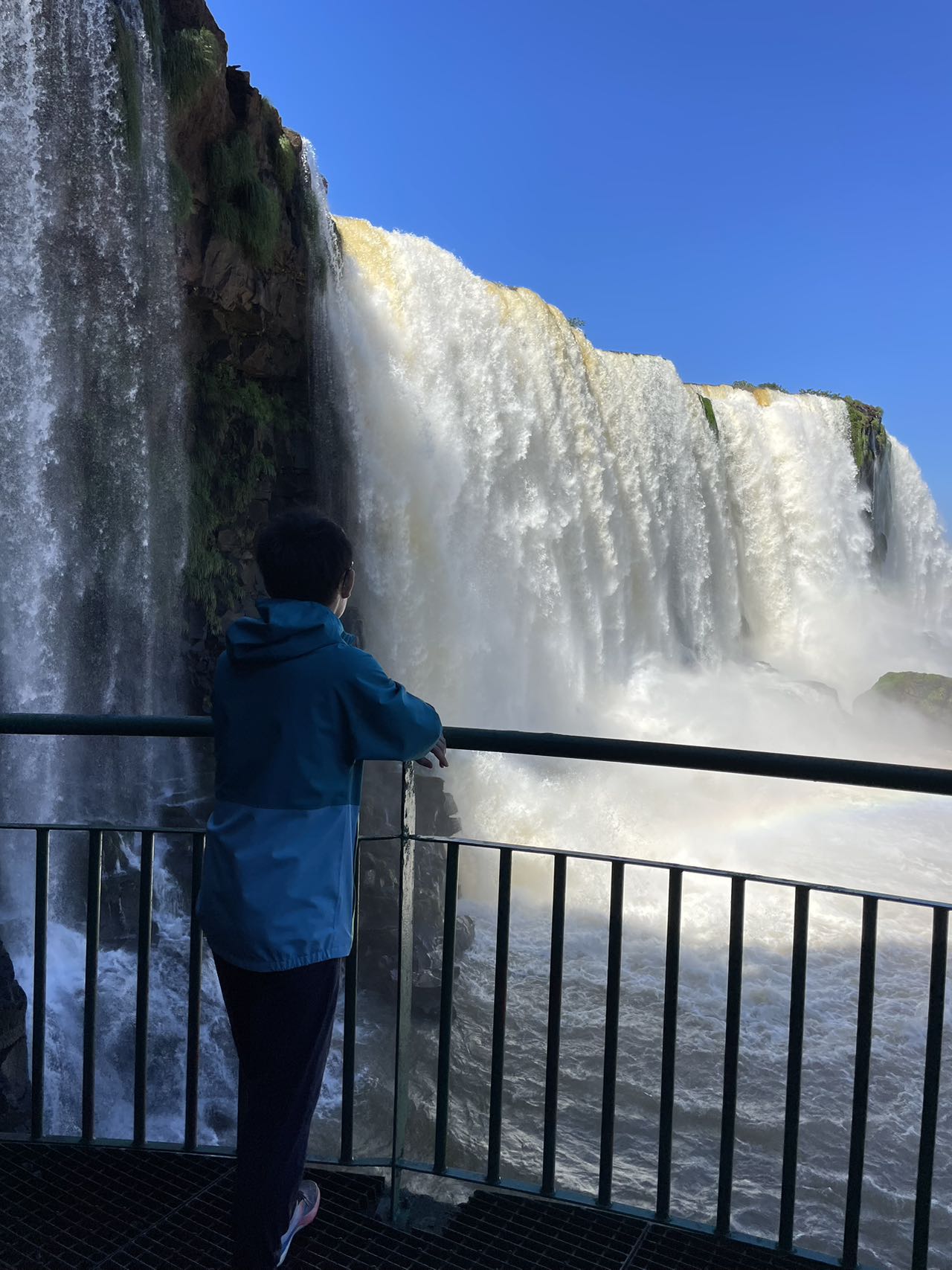 伊瓜苏瀑布横宽数公里,上下分几层,十分壮观。步行线路一直修到瀑布上方,俯瞰便能直视飞流直下三千尺的震撼。