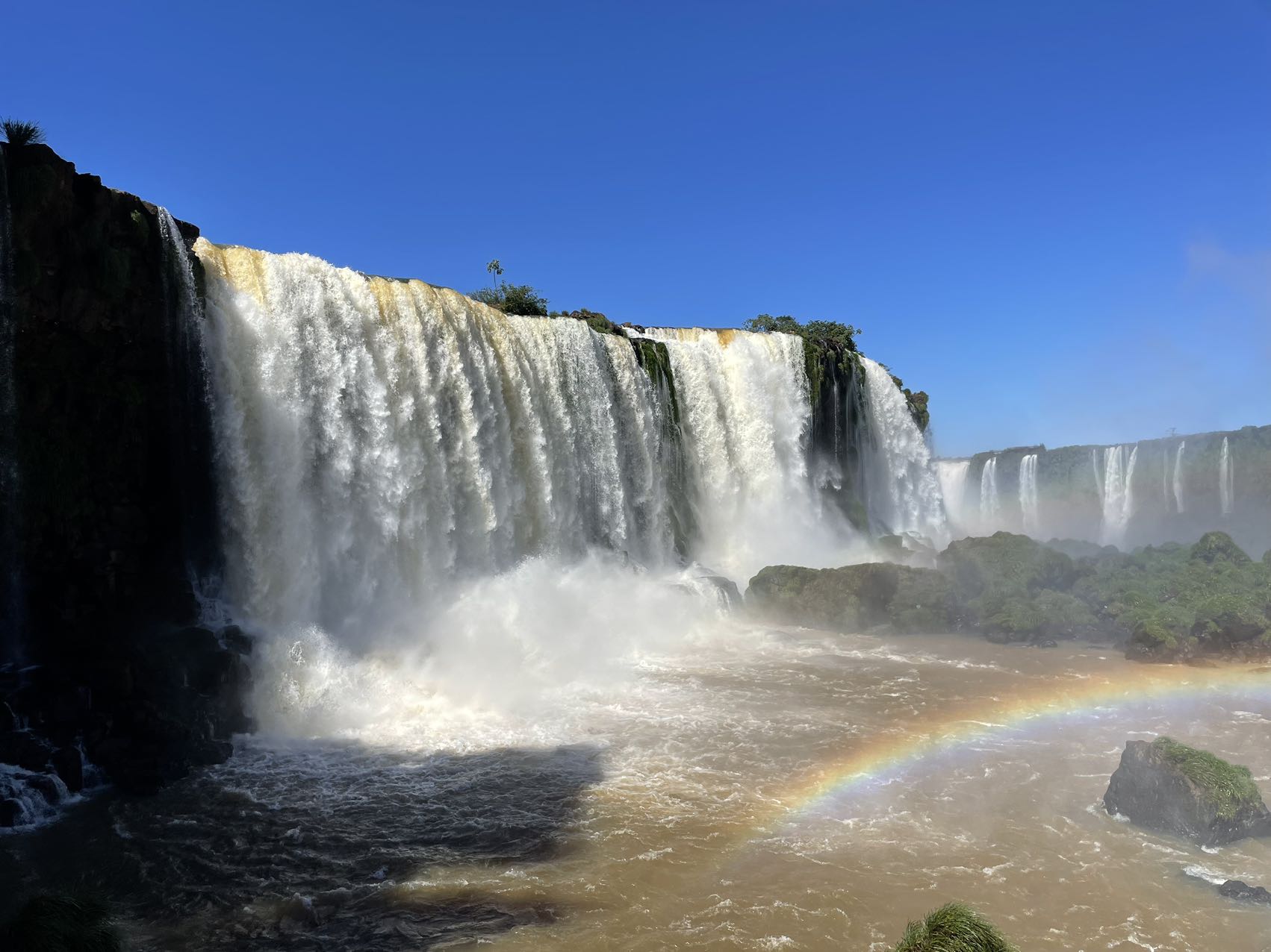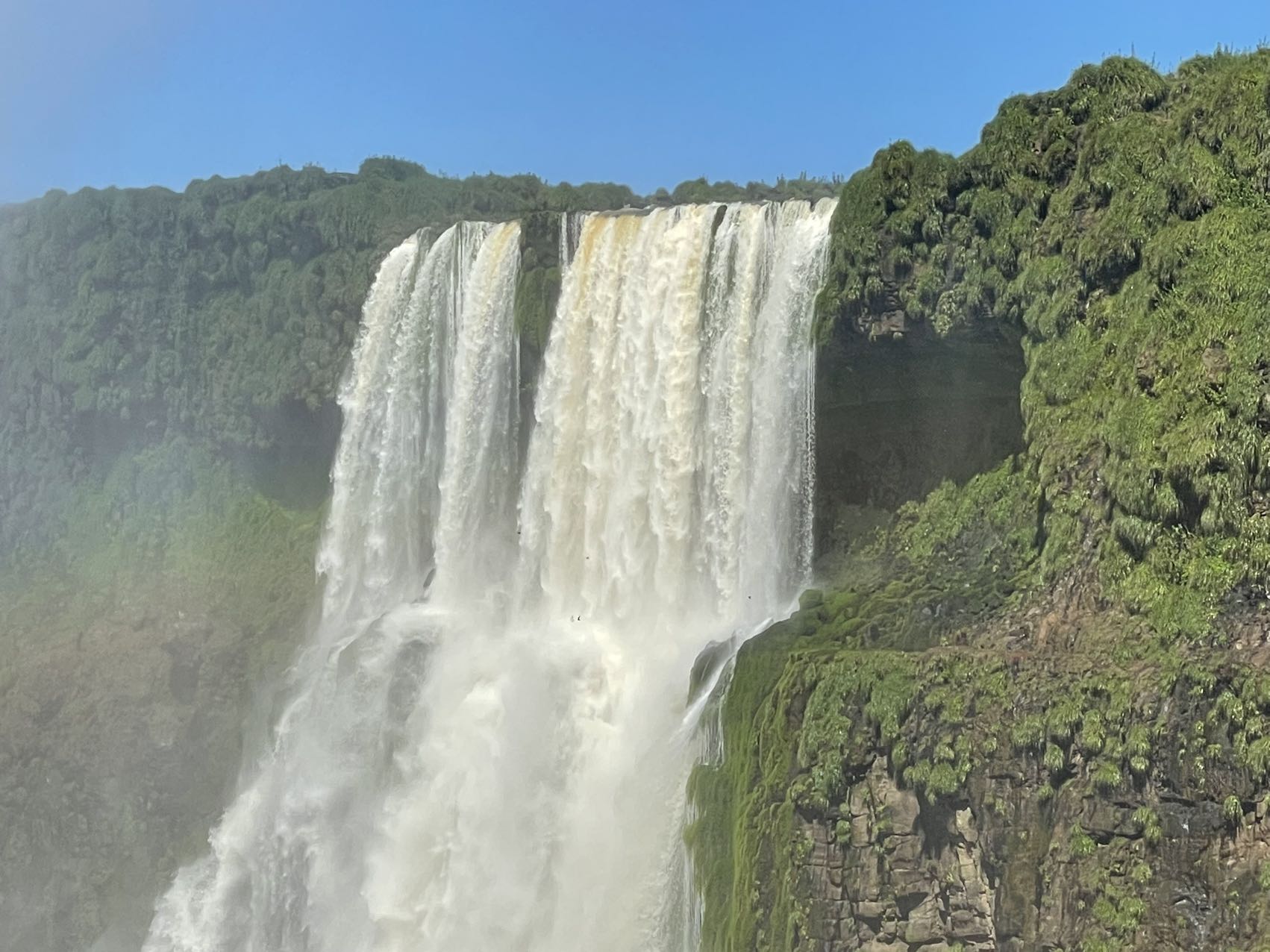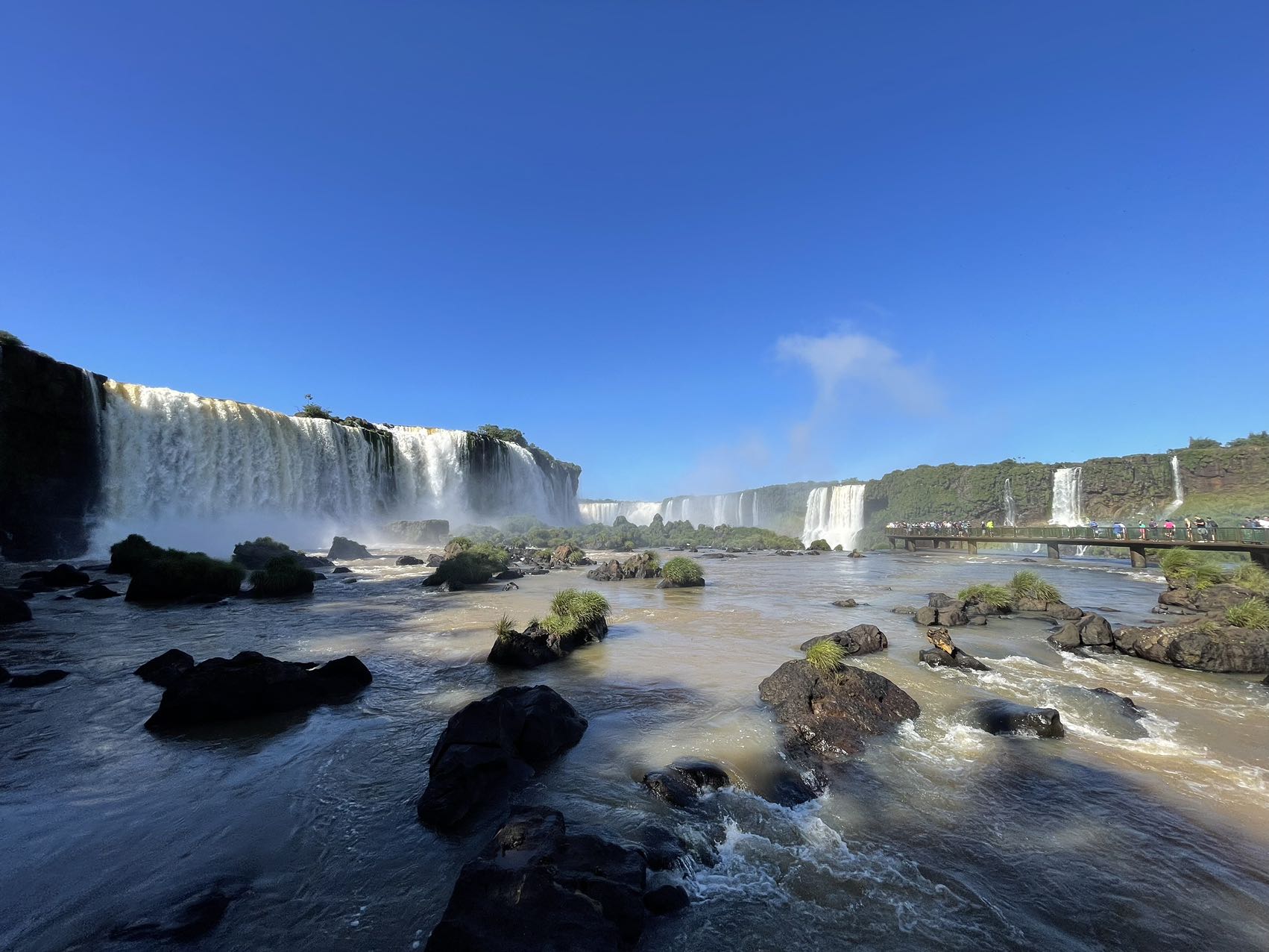 伊瓜苏瀑布横宽数公里,上下分几层,十分壮观。步行线路一直修到瀑布上方,俯瞰便能直视飞流直下三千尺的震撼。