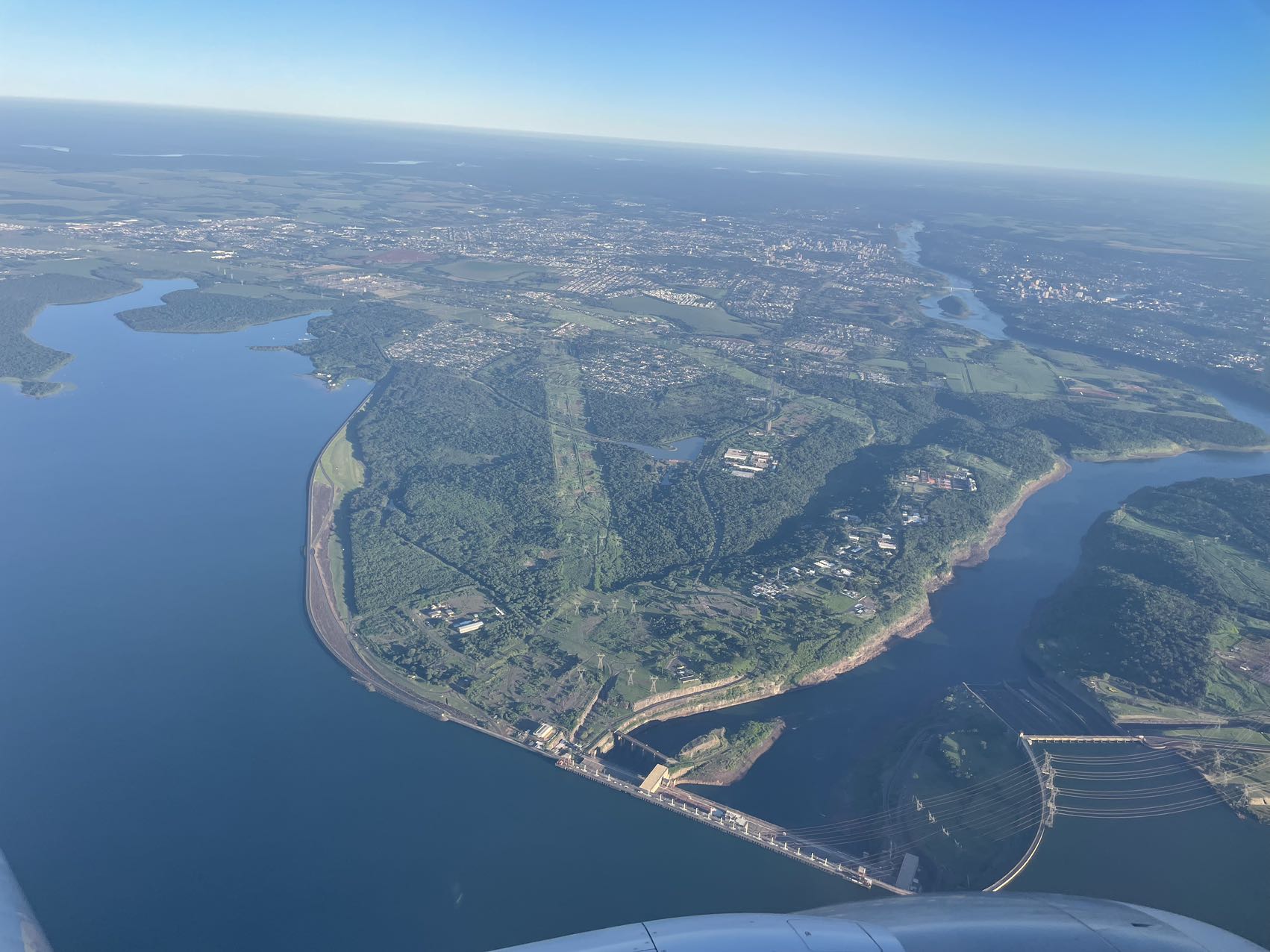 飞机上俯瞰伊瓜苏河和伊泰普水电站。