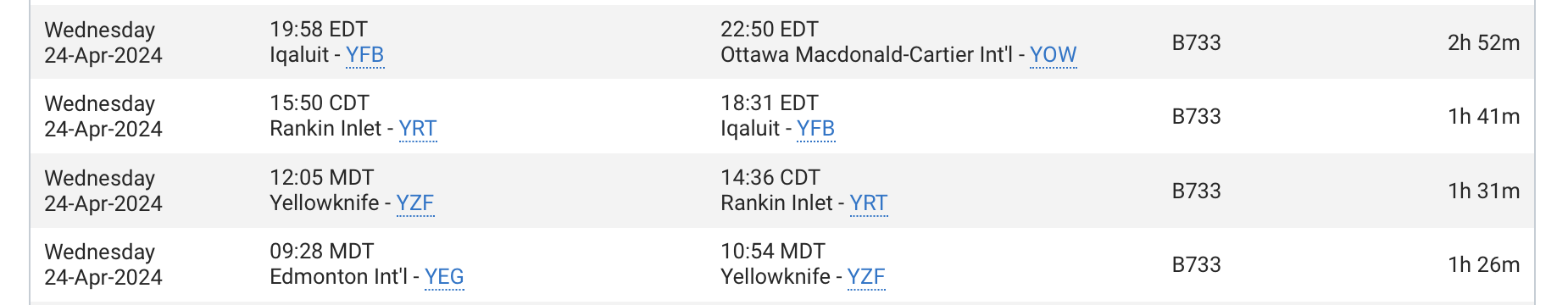 在想问下,请问你这个是什么app显示的具体行程?我订的票即使在canadian north官网上,也看不到具体每一个stop的时间。