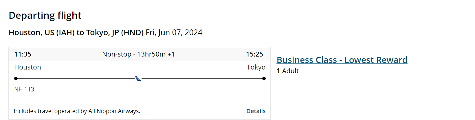 刷了农贸市场2星期后, 发现远期票每次同日期只放一张。被迫接受现实后,分别给自己跟LD 换了一张(62.5KUR - > 75000k AC +77CAD) IAH–>HND 2024.6.7 跟6.8 出发 ANA business class (当时ANA还活在AC里, RIP)