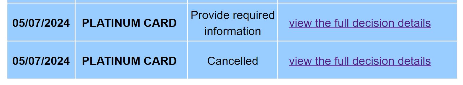 申请白金用了后退大法以后第二个申请已经变成了provide more information. 点进去以后显示We apologize, but due to a system error we are currently unable to access your application. Please try again later. 目前只收到一封decision邮件, 带一个reference number. 请问这个number就是reconsider时候用的吗?还是应该有第二封邮件?