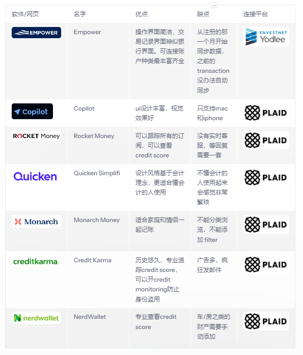 以上分享只适合盘算个人/公司资产汇总,建议选到最适合自己的那一款长期使用。如果只是感兴趣想要测评不同操作系统的,记得测试完了以后去银行的setting-privacy,把第三方连接了数据的平台全都取消,防患于未然。如果只是想要记录sign up bonus或者MS,还是建议用隔壁已经整理好的google tracking sheet模板。如果硬要担心泄露,我也建议你google tracking sheet。
