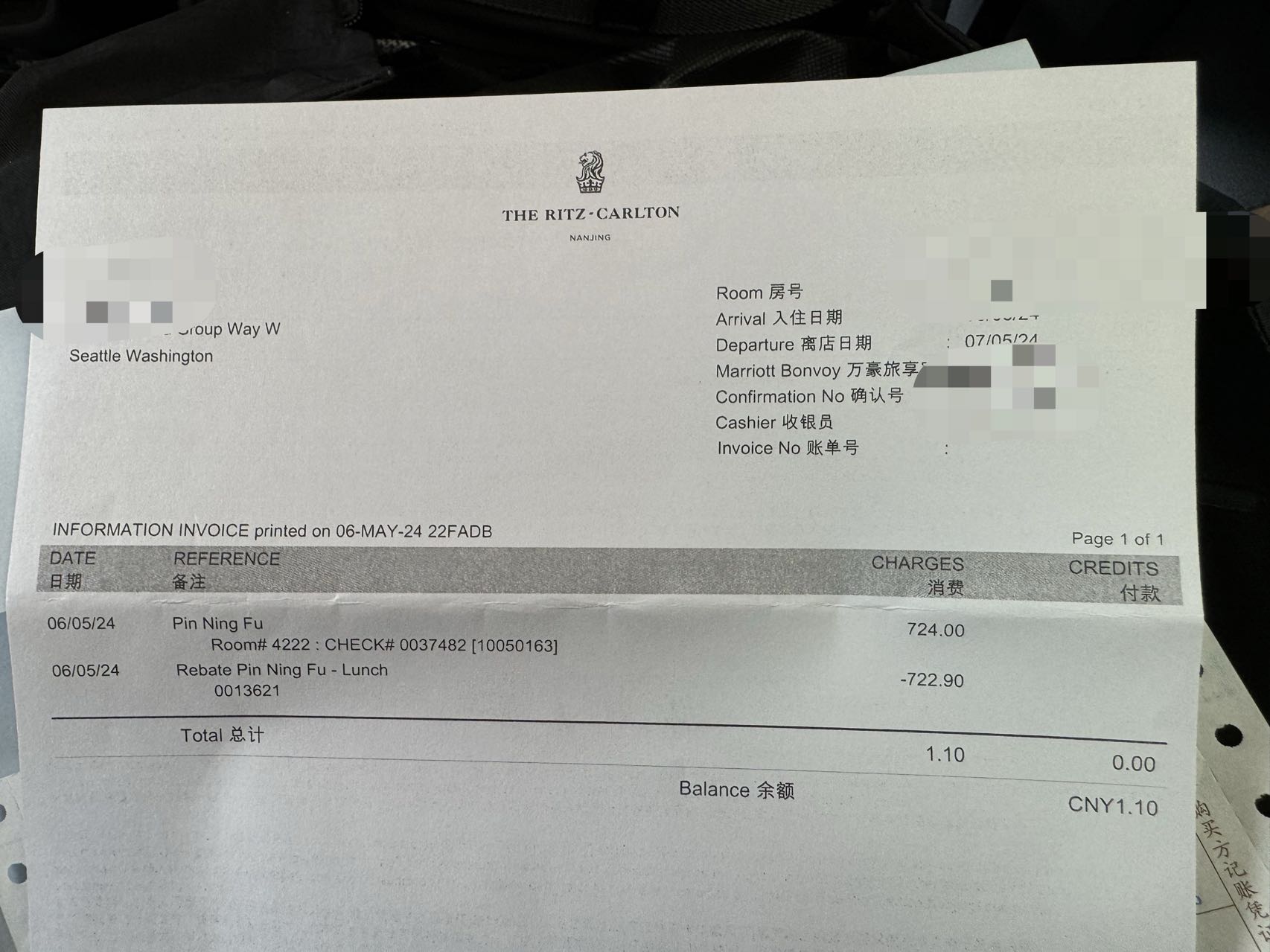 用FHR+套房券获得的南京丽思卡尔顿1卧室套房。提前3天就confirm。