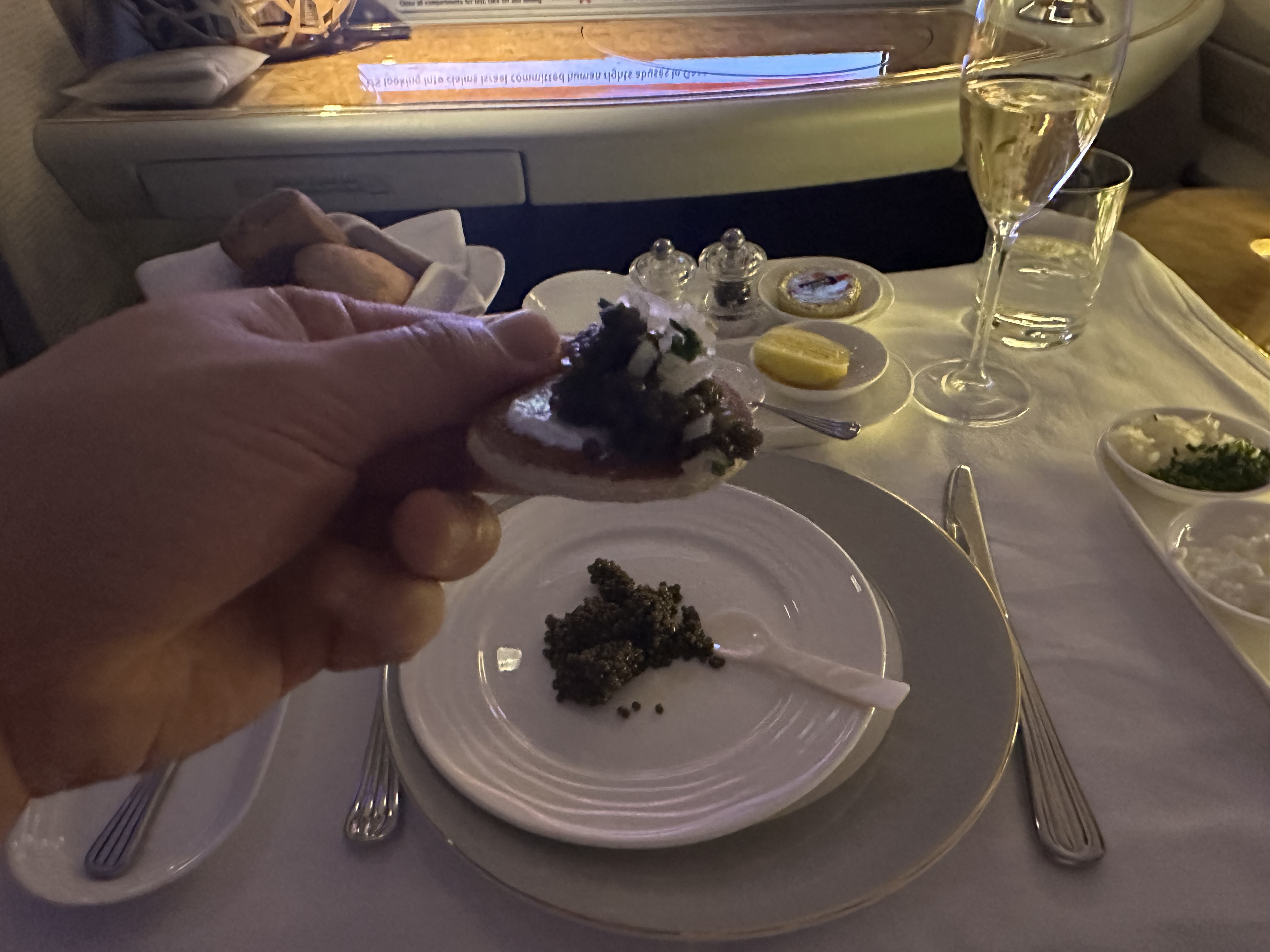 这个鱼子酱吃爽了吧,羡慕。看来JAL虽然不让加,但比ANA好了,ANA根本没这个玩意儿