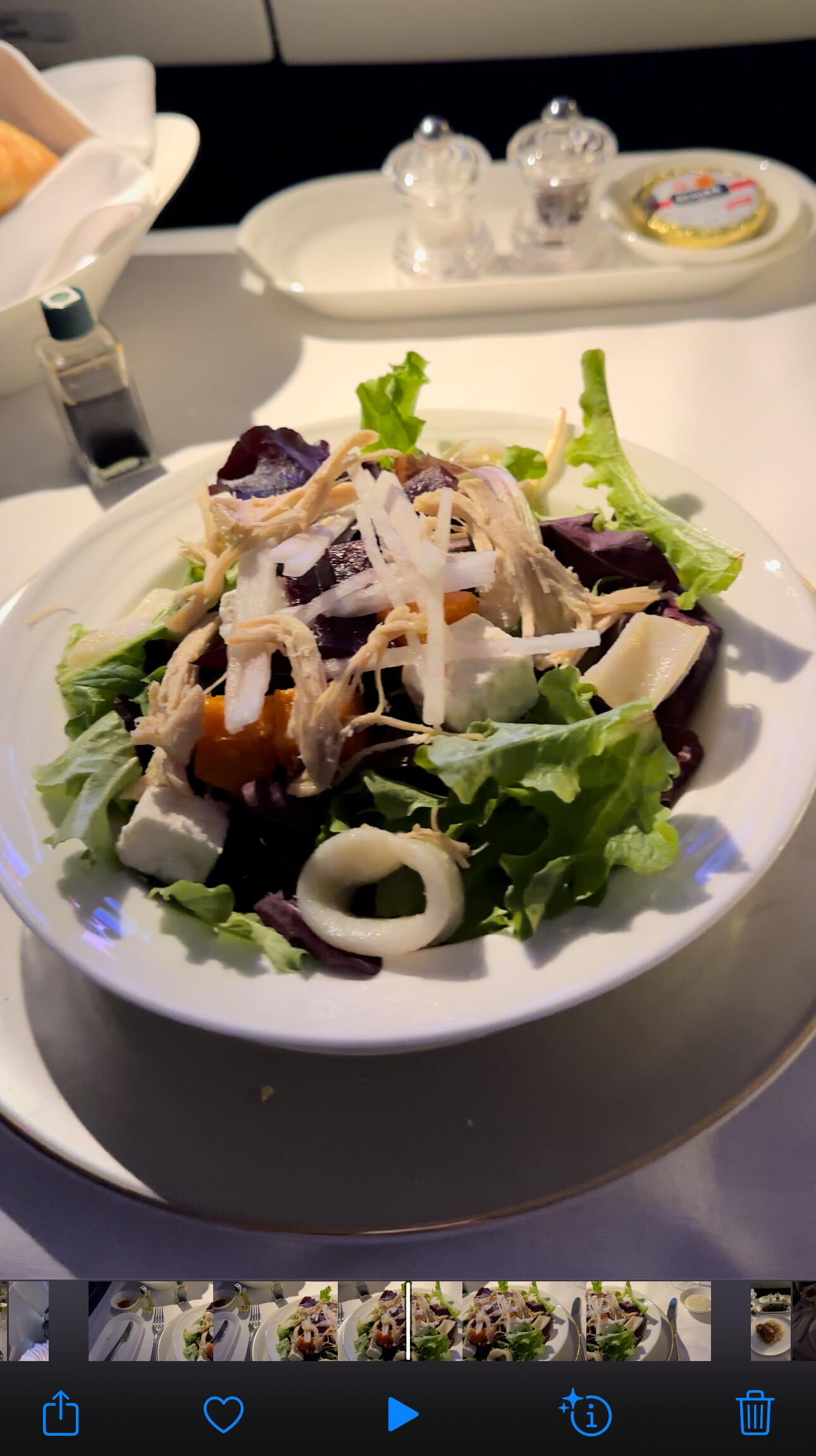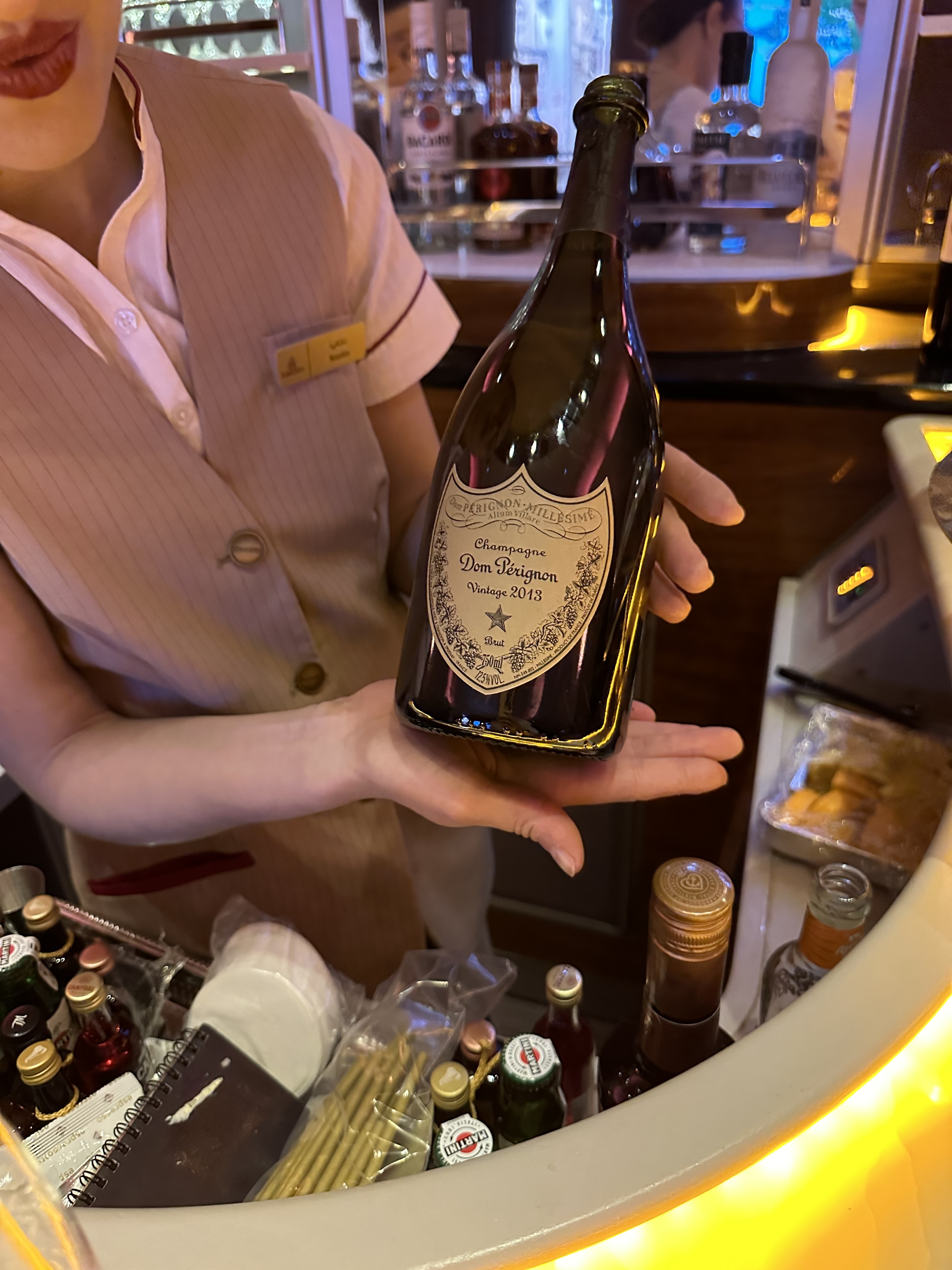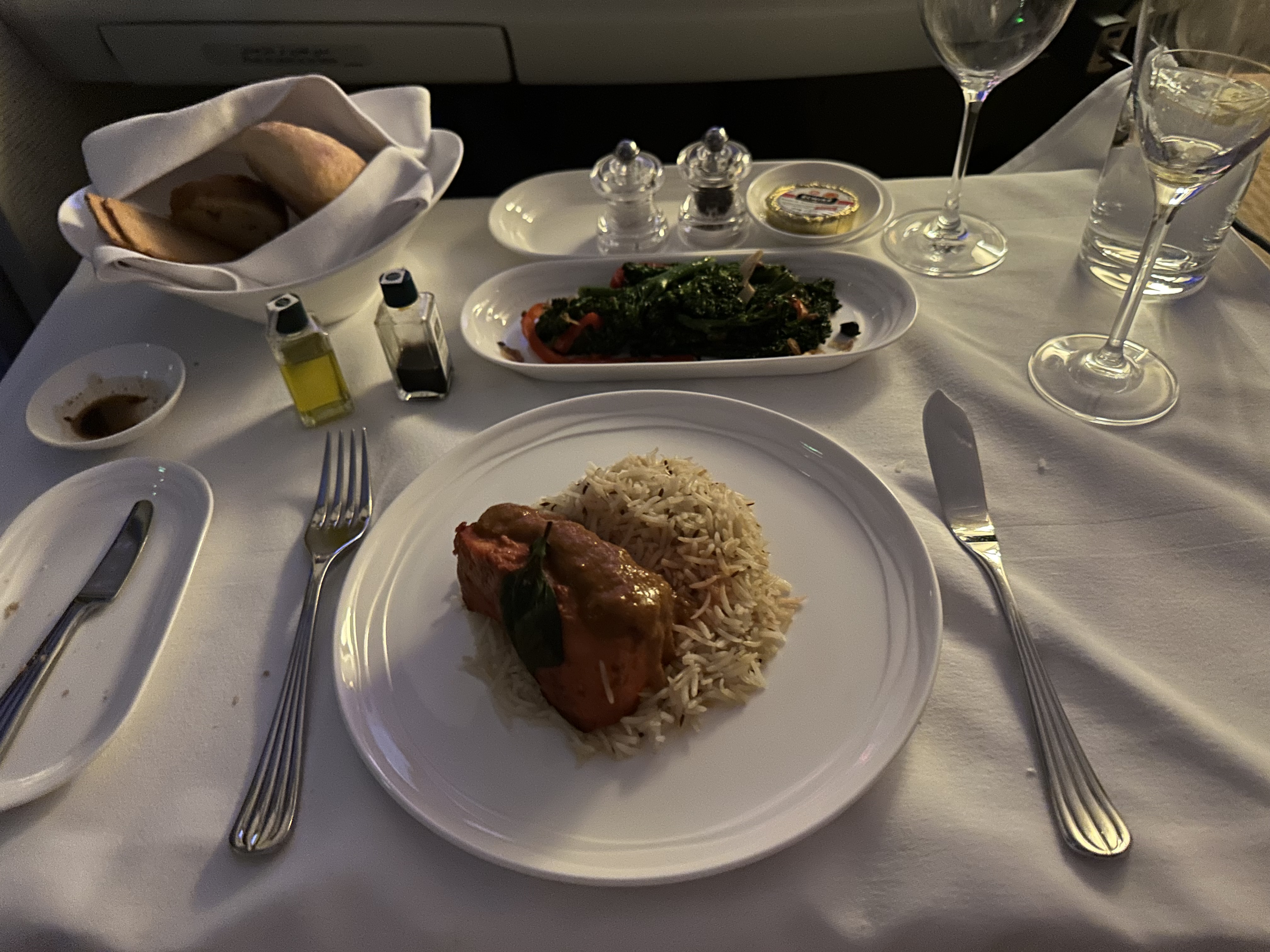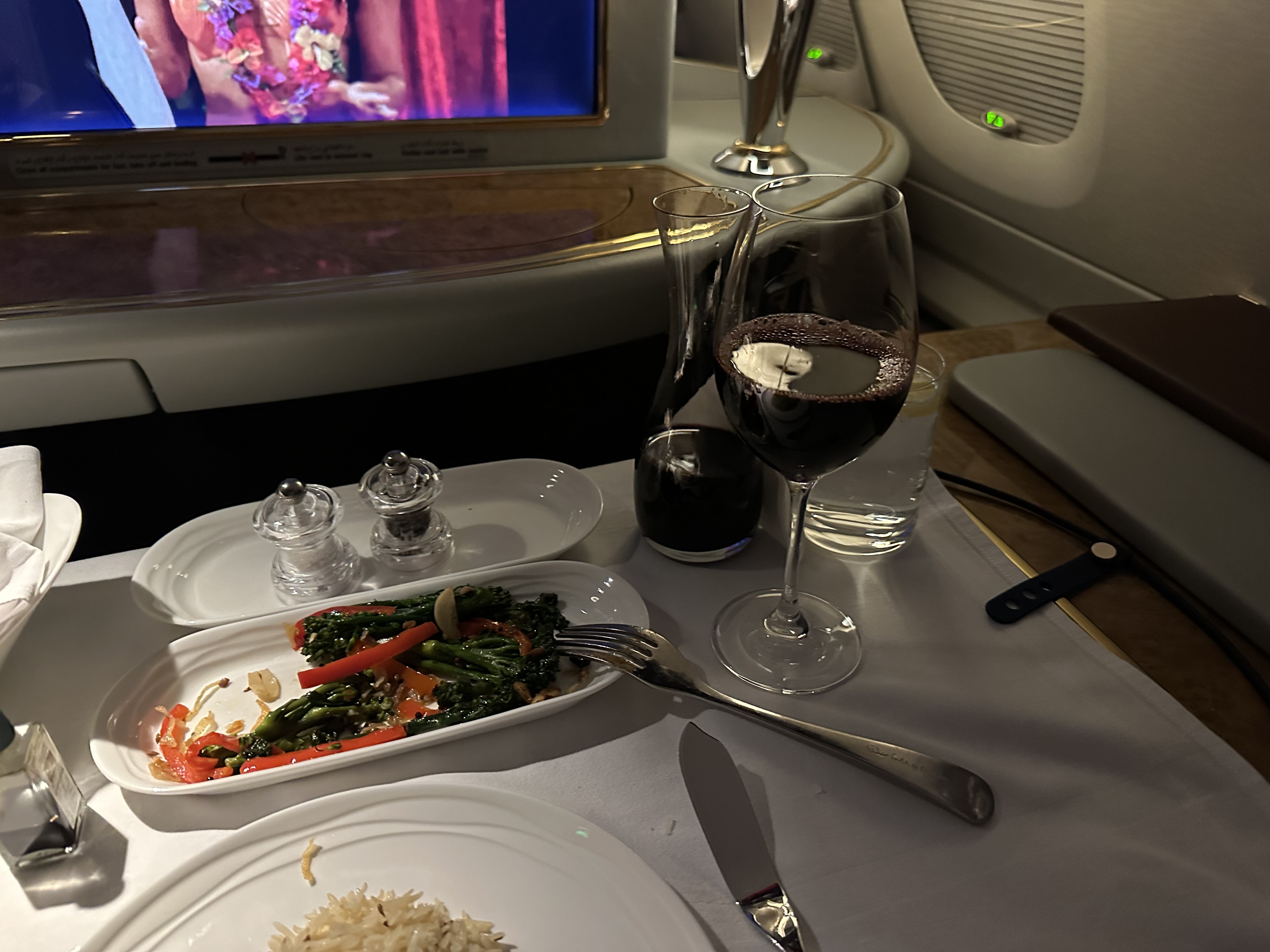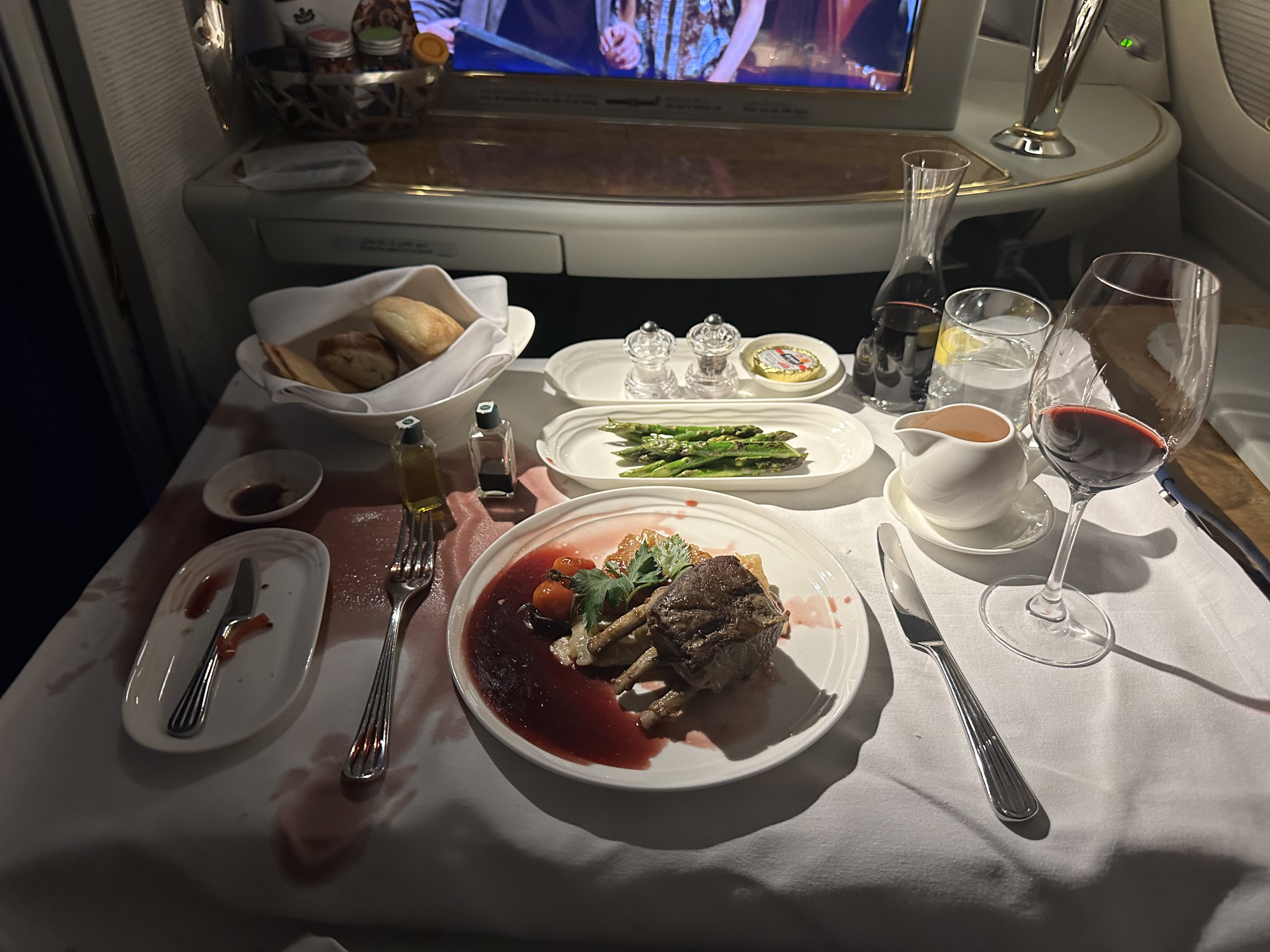 (当中有个小插曲,就是吃第二道主菜的时候突然一个颠簸,结果红酒撒了一桌…. 结果空城姐姐看到后还立马问我要不要重新做一次,我说为了洗澡我就不浪费时间了,就接着吃了)