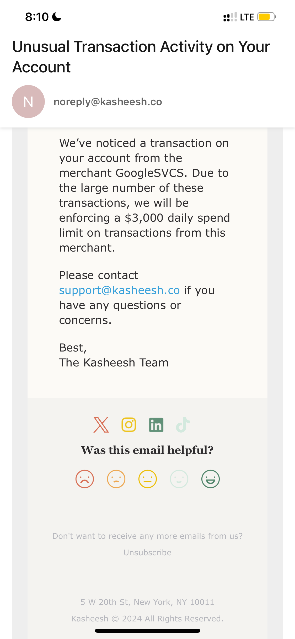 UPDATE 6/2/24: Appears to be blocked from Kasheesh side 2 days before Google Pay app is closing in USA. RIP