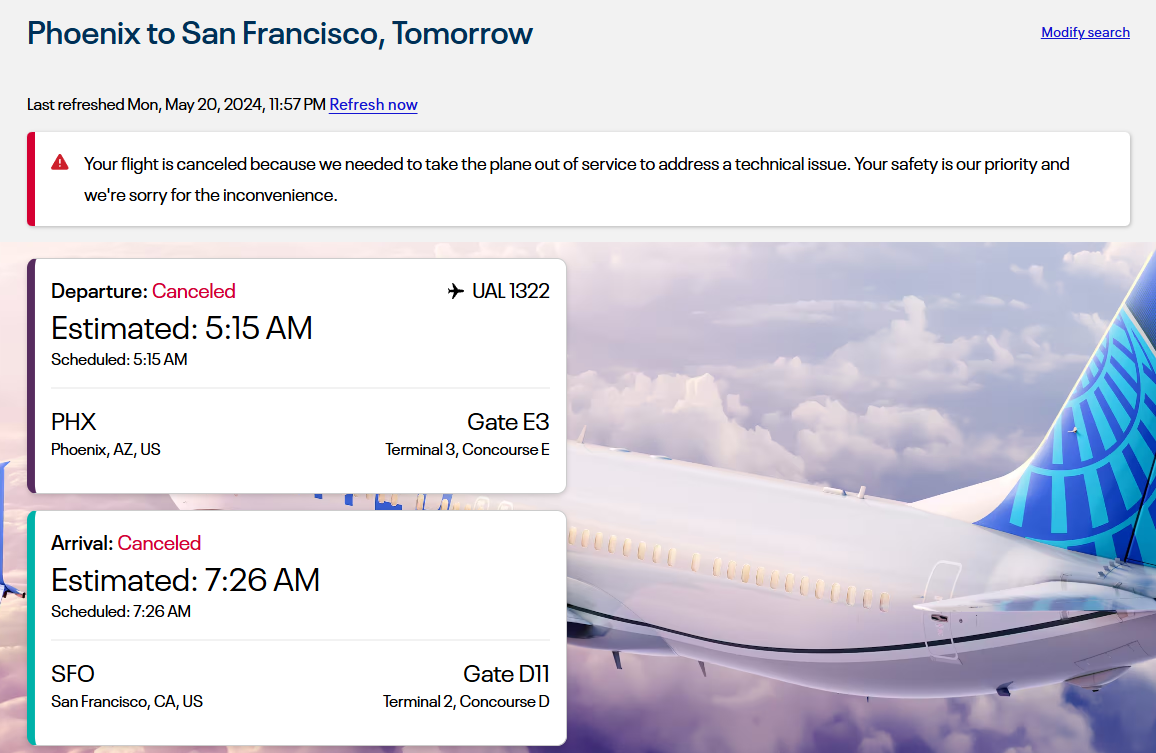 机械故障这种情况更有利于乘客,还是更有利于航司?United是这么写的“You flight is canceled because we needed to take the plane out of service to address a technical issue”.