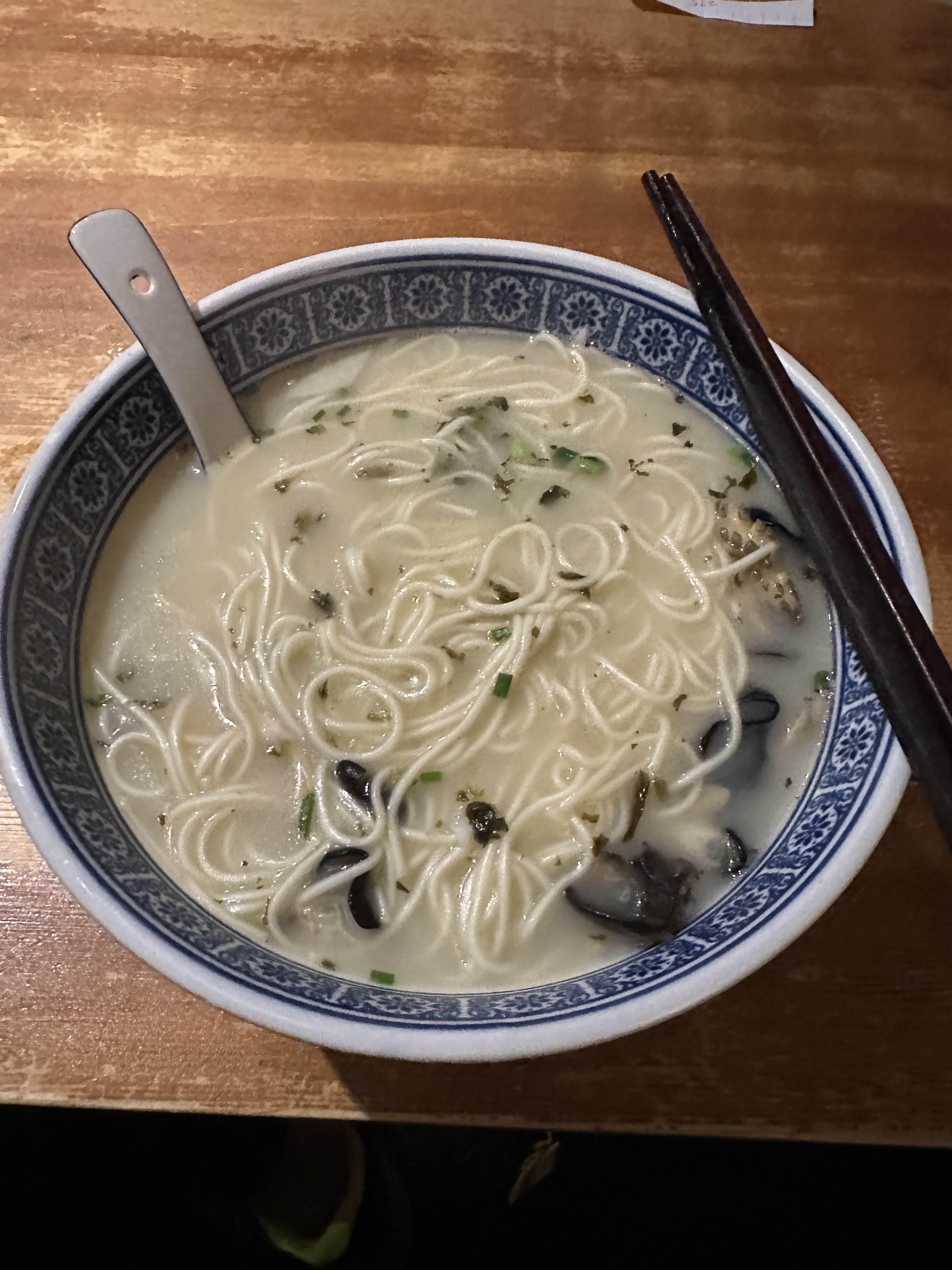 这家面馆强推,汤非常新鲜,(吃不出味精的甜味,和吃过味精后口渴的感觉)所以我认为汤底没味精,面也不错可以无限加面,半小时排队没白排,个人强推。