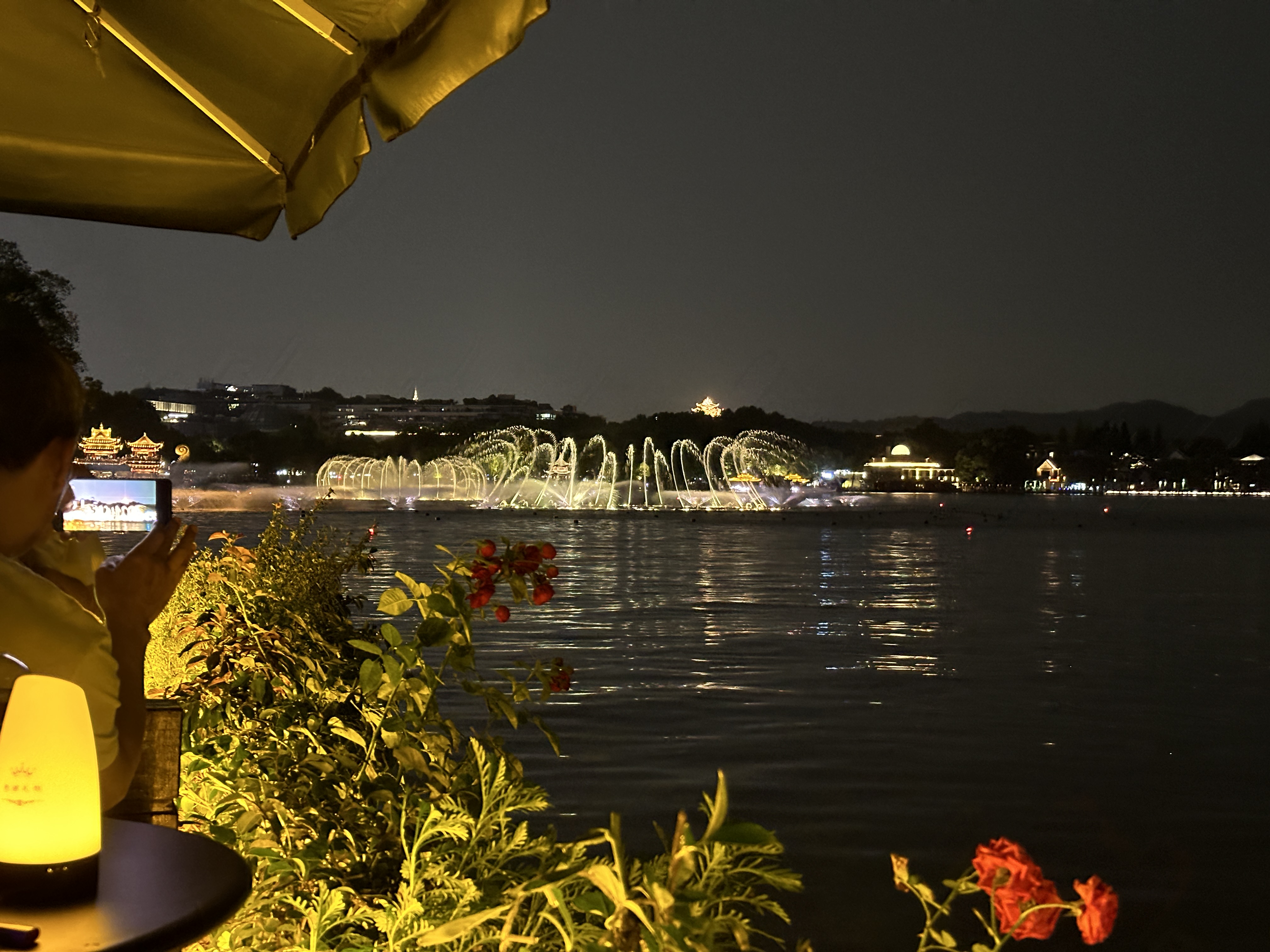 可惜泥潭发不了视频,一壶龙井一壶茶赏喷泉真的很美