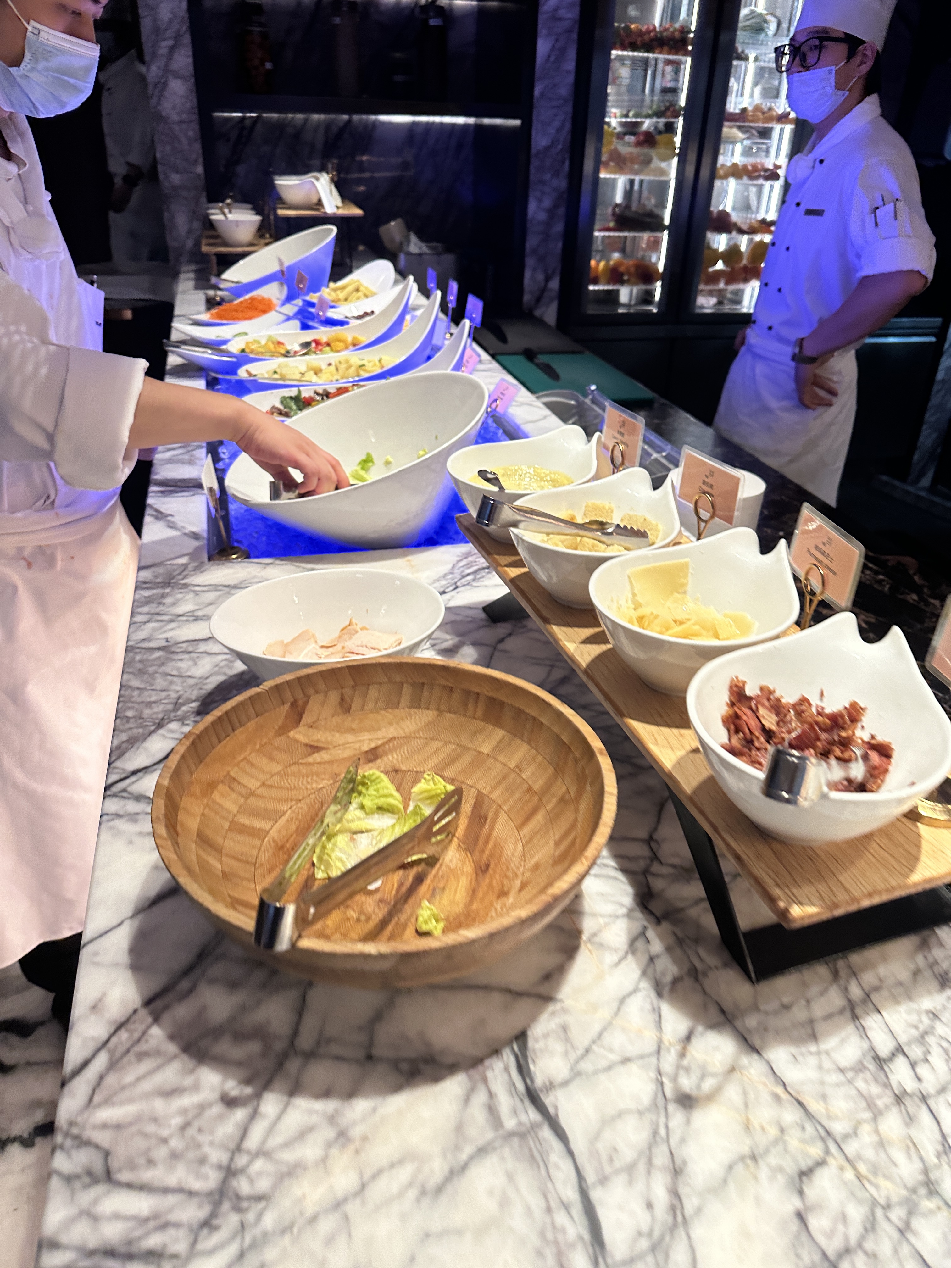 晚上回到酒店想起来我每天有100美元的赠送就去了酒店的凯菲厅吃自助晚餐,这顿花了我618人刀,还花不满100美金