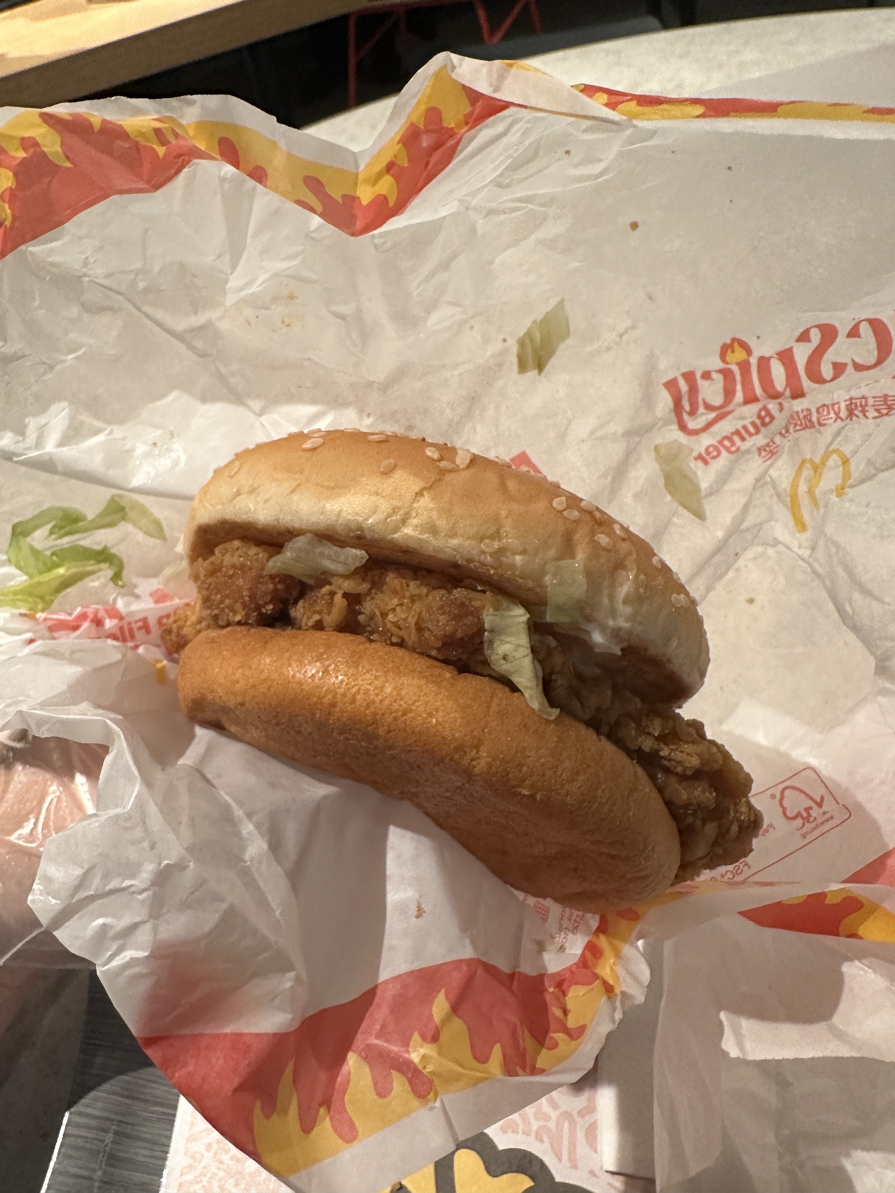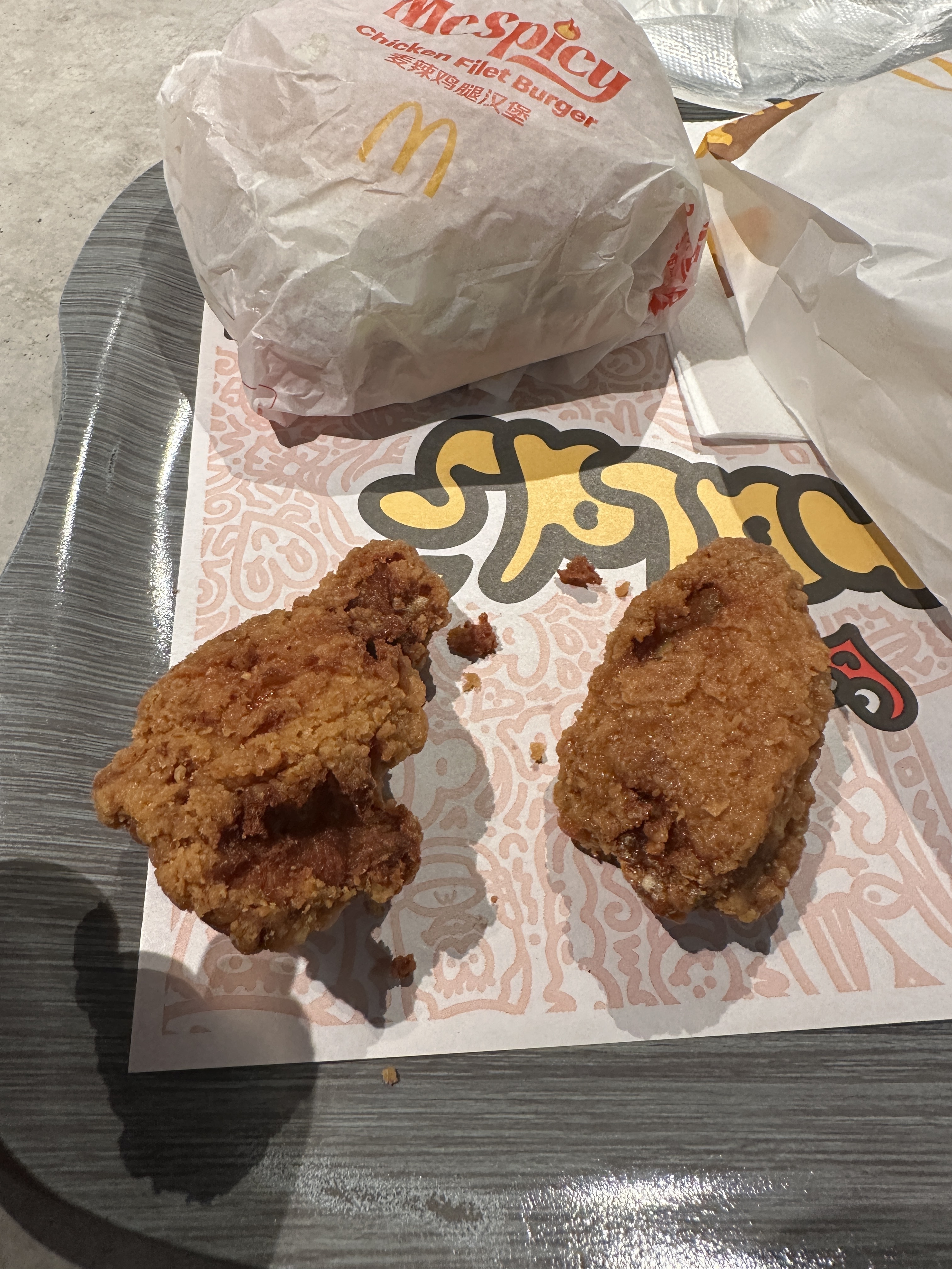 麦辣鸡翅+麦辣汉堡+小可乐花了我45RMB,有没有升级我不知道,不过价格蛮贵的,不过肉都超级嫩,也很辣(出国多年没吃过辣了,这个对我来说有点过辣)希望明天别长痘痘