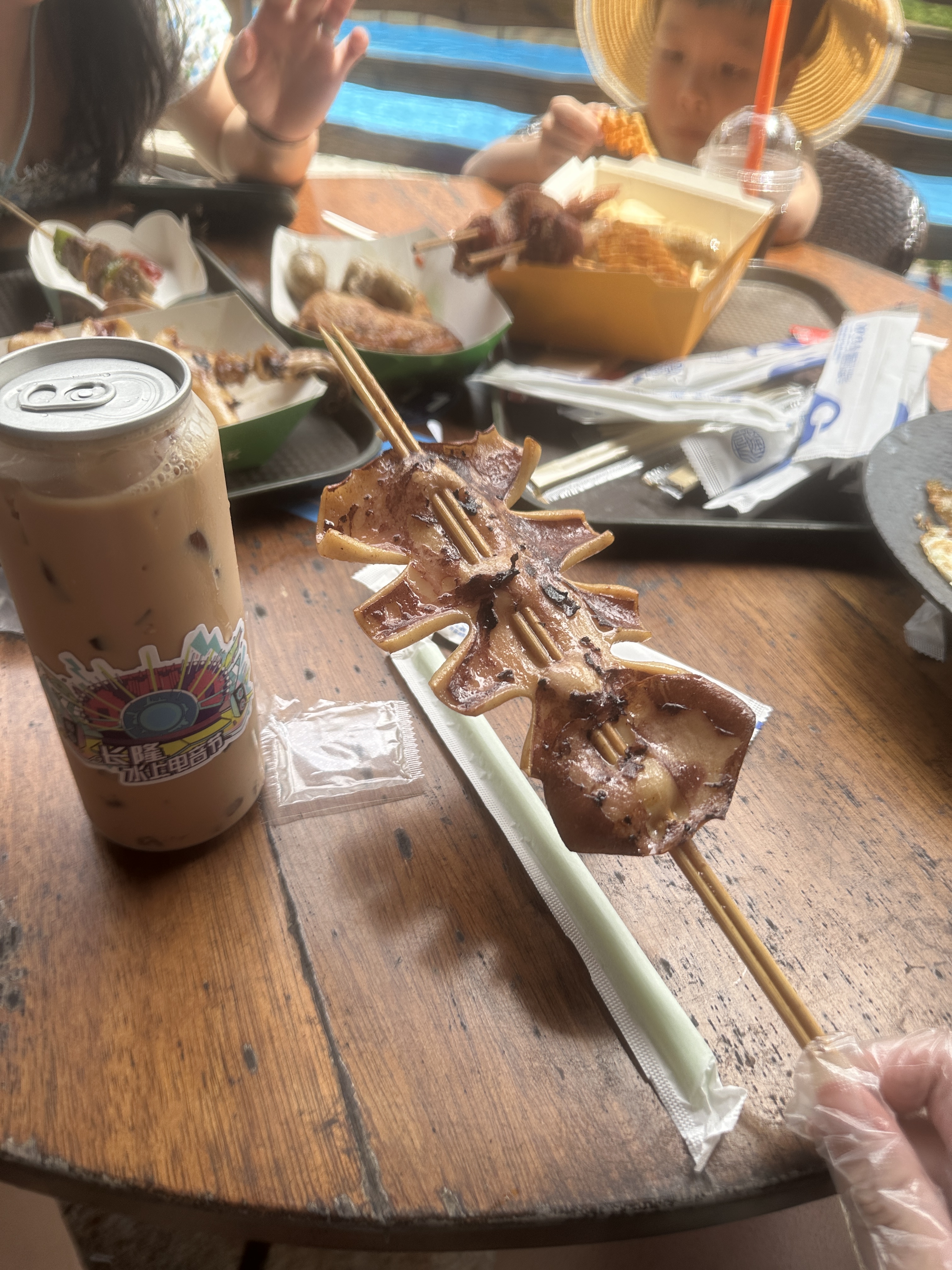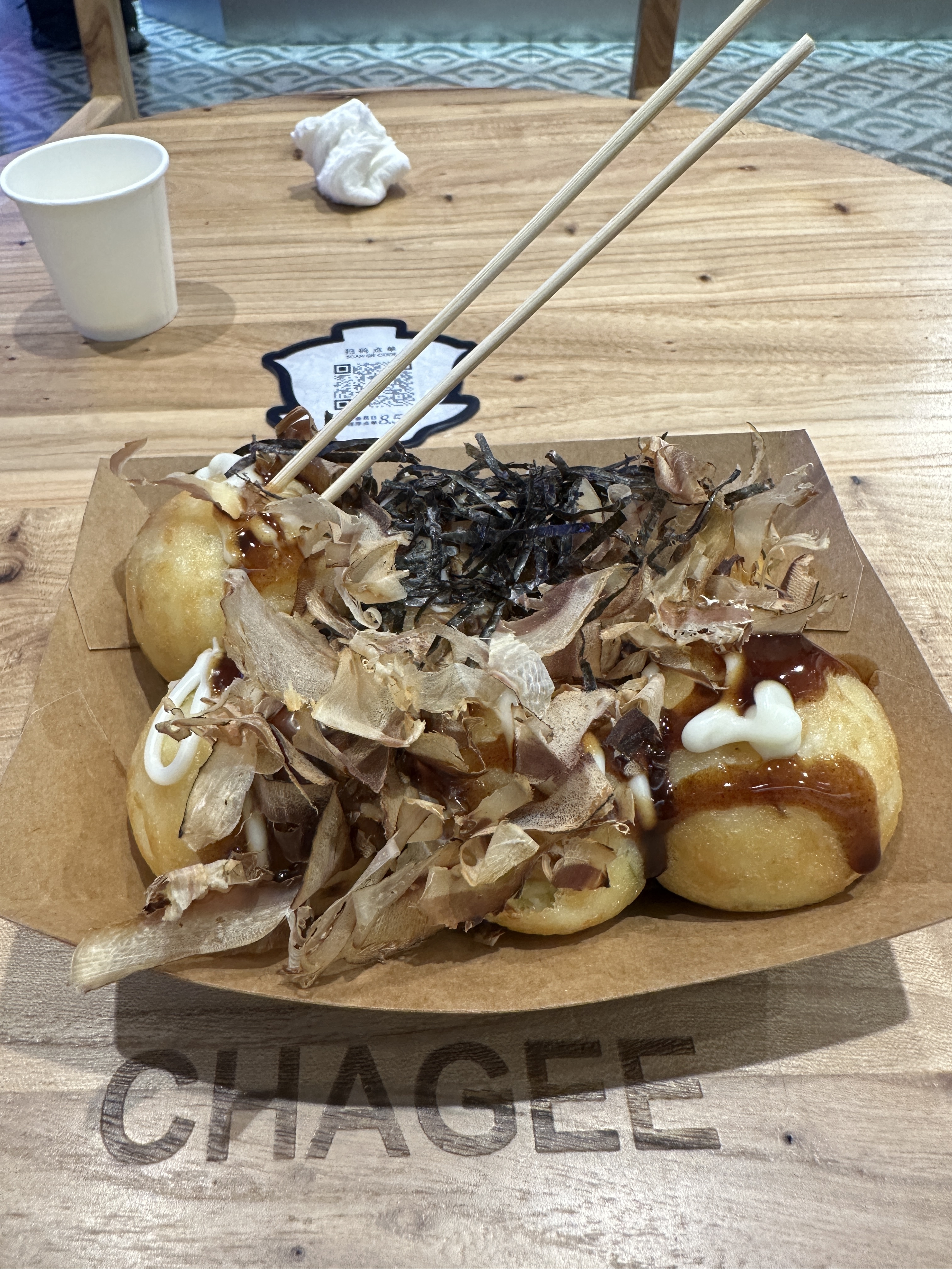 在地铁买了个章鱼小丸子和霸王茶姬休息一下准备出发西湖