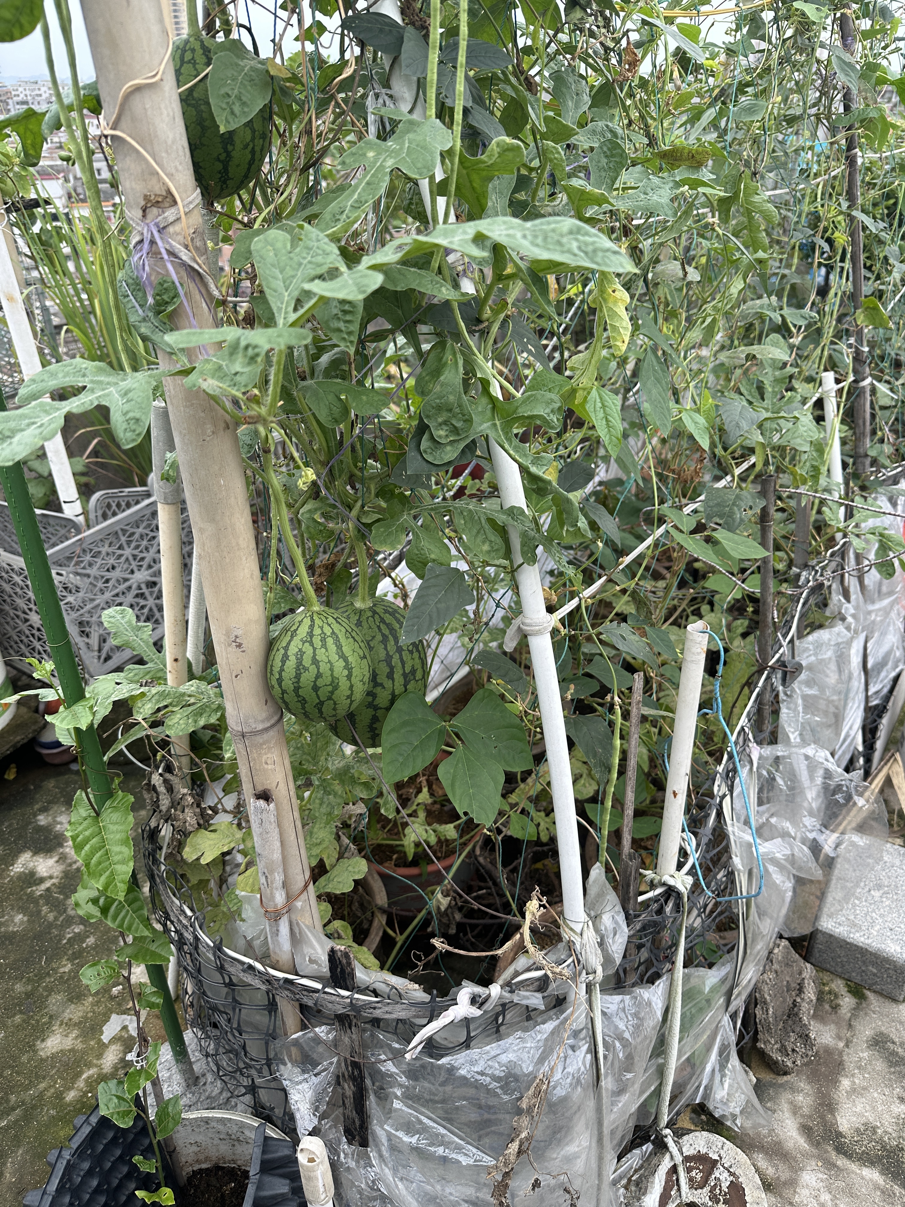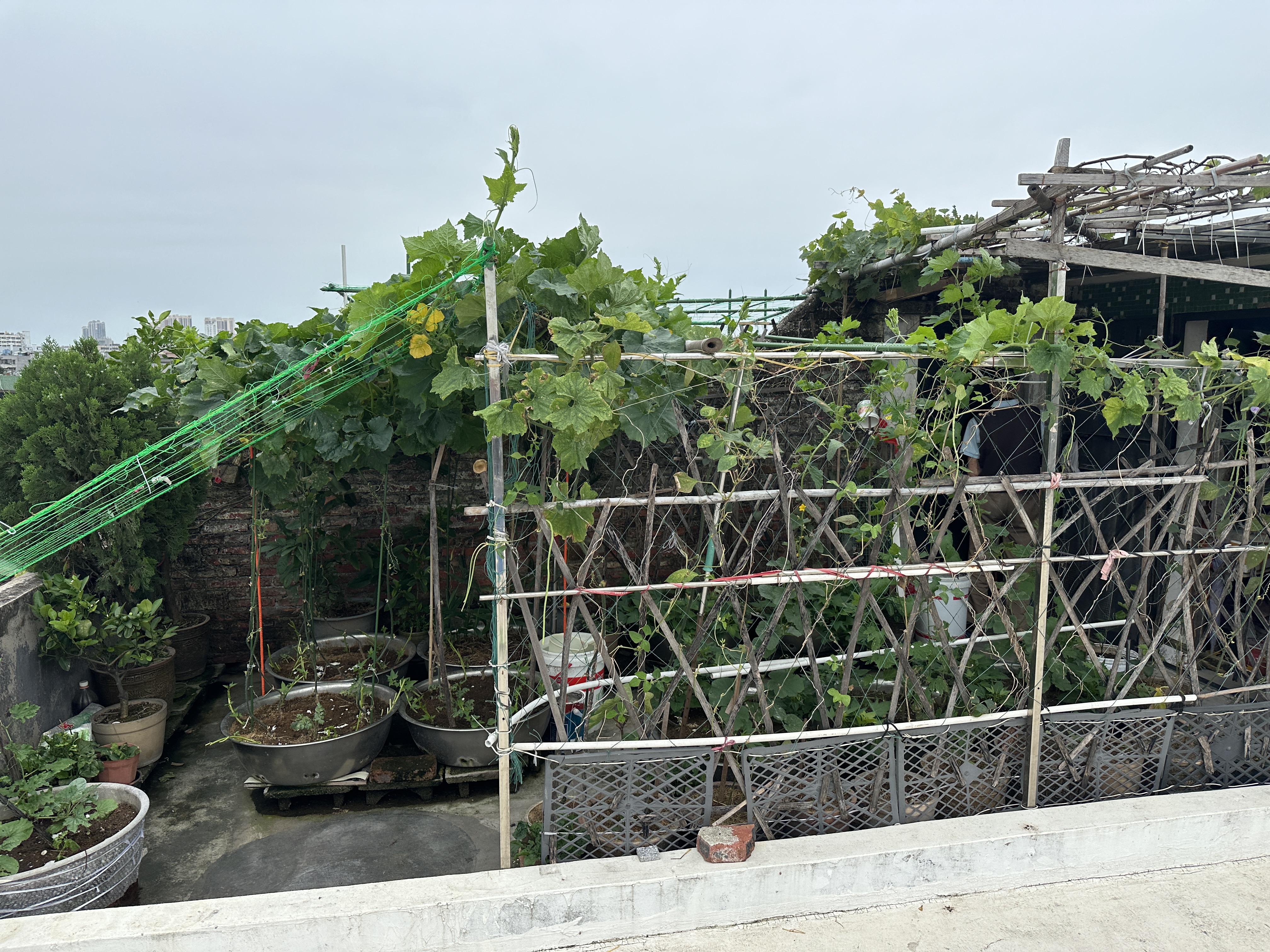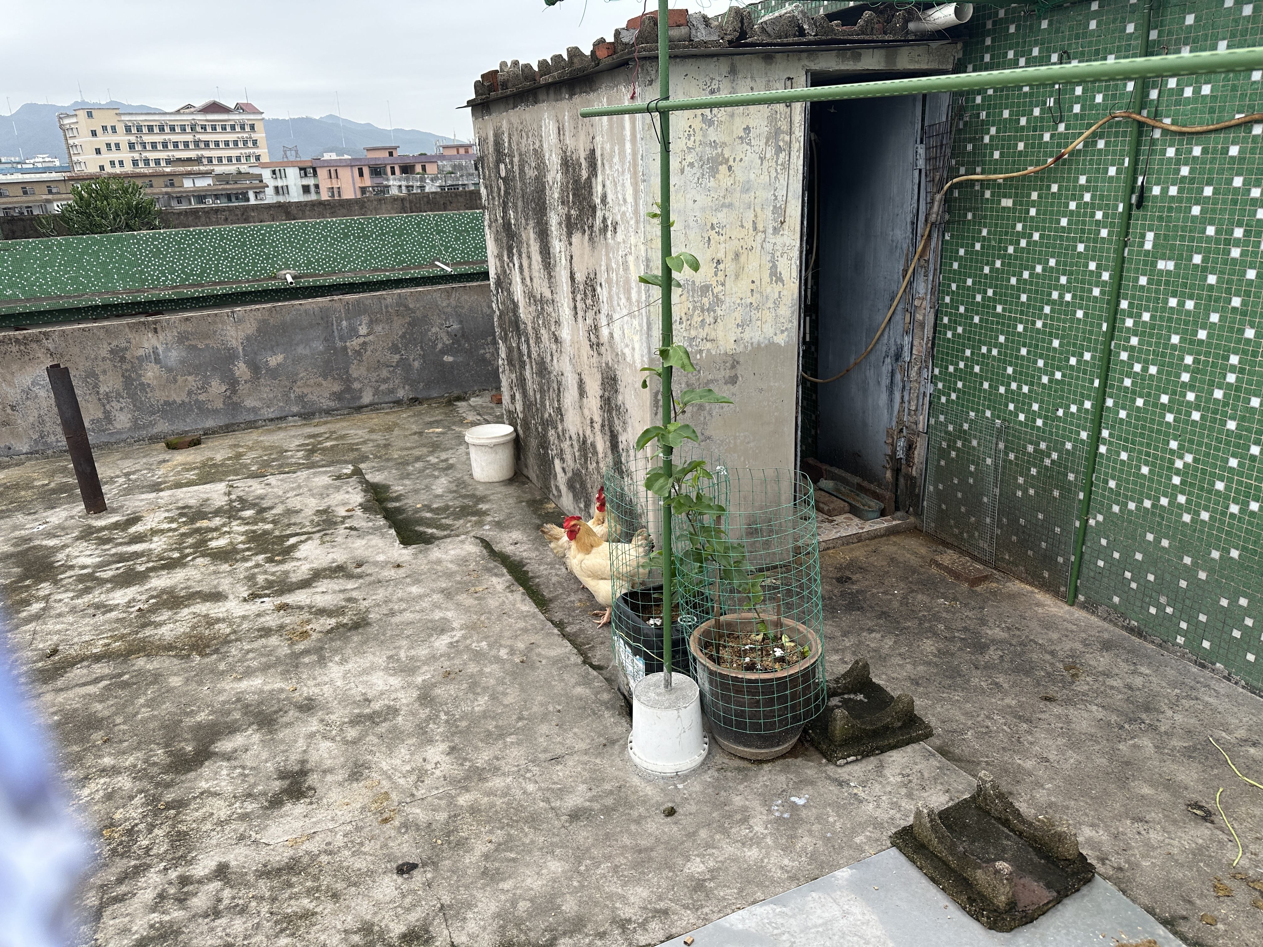 我来发两张我外公在楼顶养的三只老母鸡和种的东西吧,真的是什么都有
