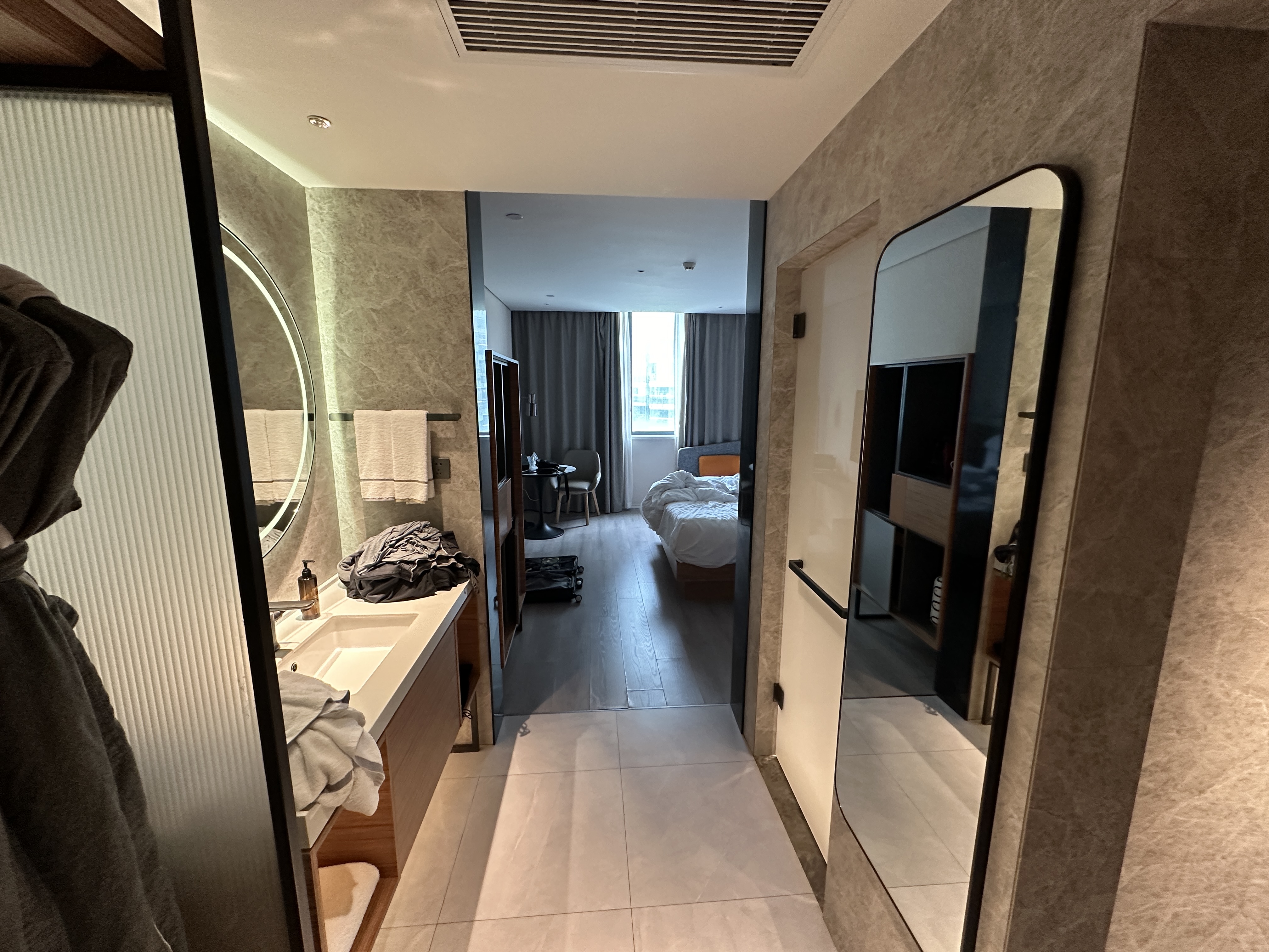 (请忽略洗脸台旁的那堆衣服,我等过两天在去酒店的自助洗衣房洗)