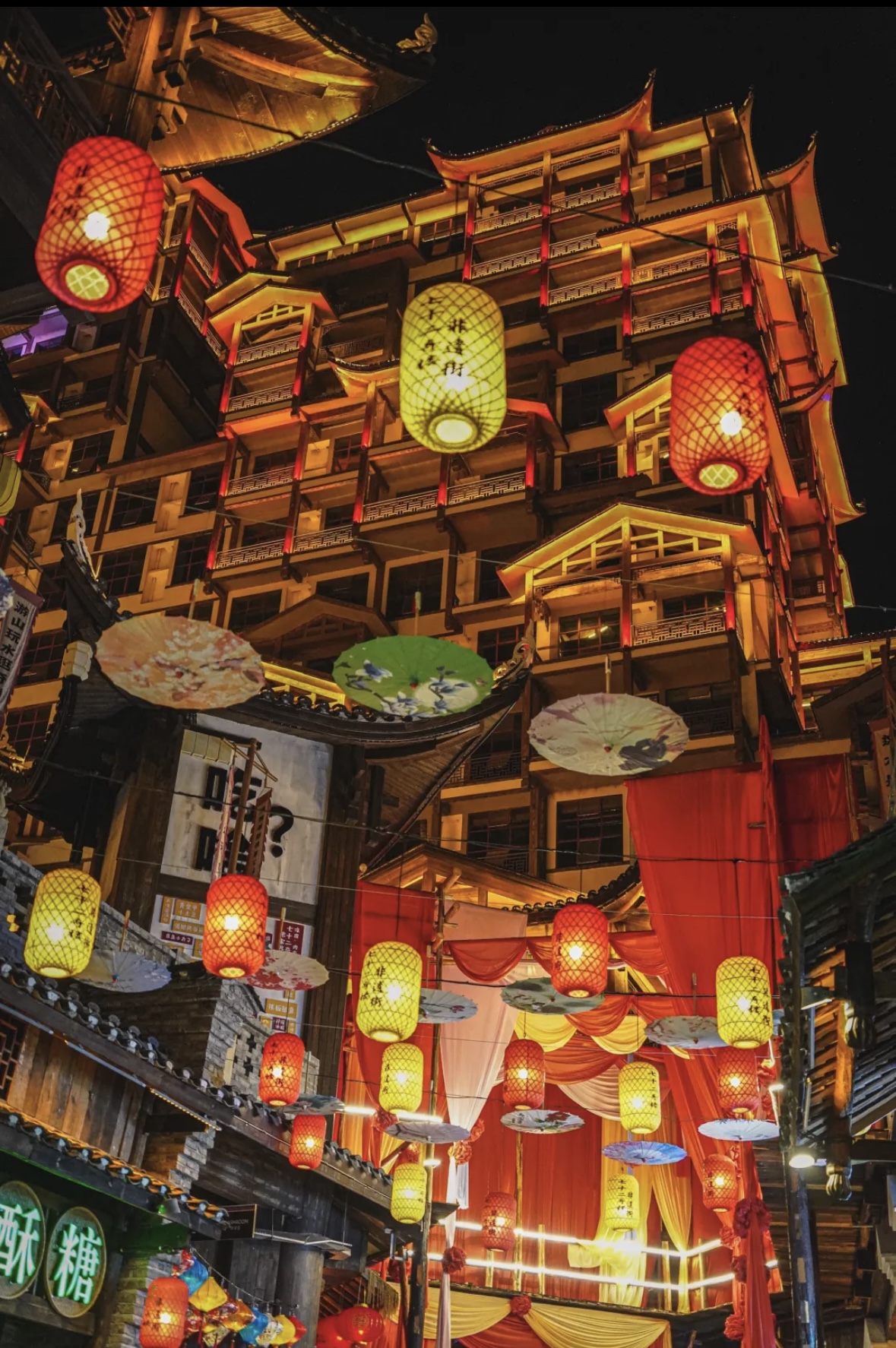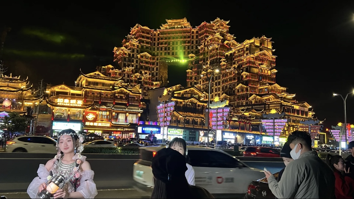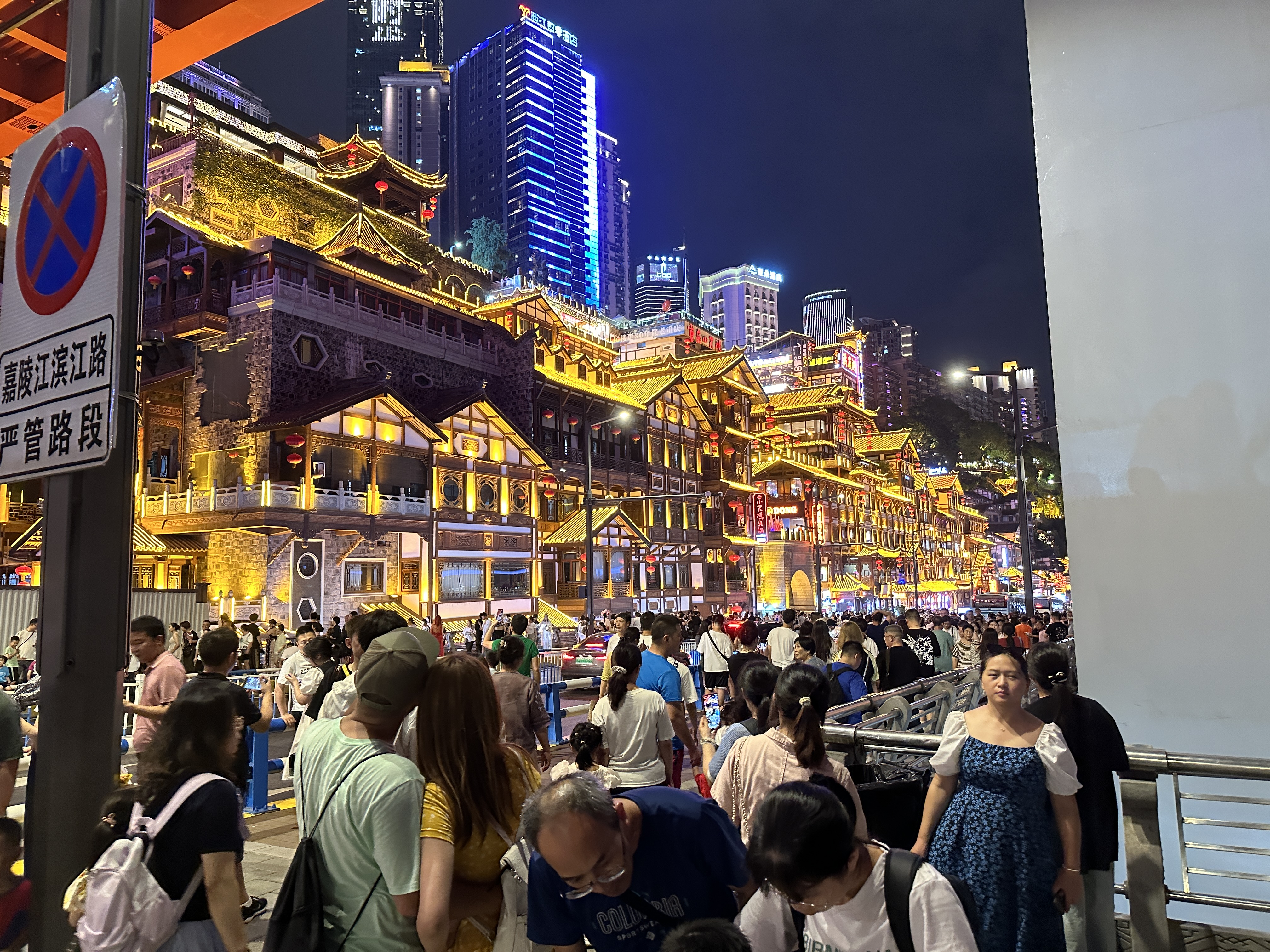 接着一边逛一遍欣赏美女等到晚上去洪崖洞,结果这人山人海人挤人想拍照连个机位都没就走了,10点钟硬是被塞到十一点才回到酒店