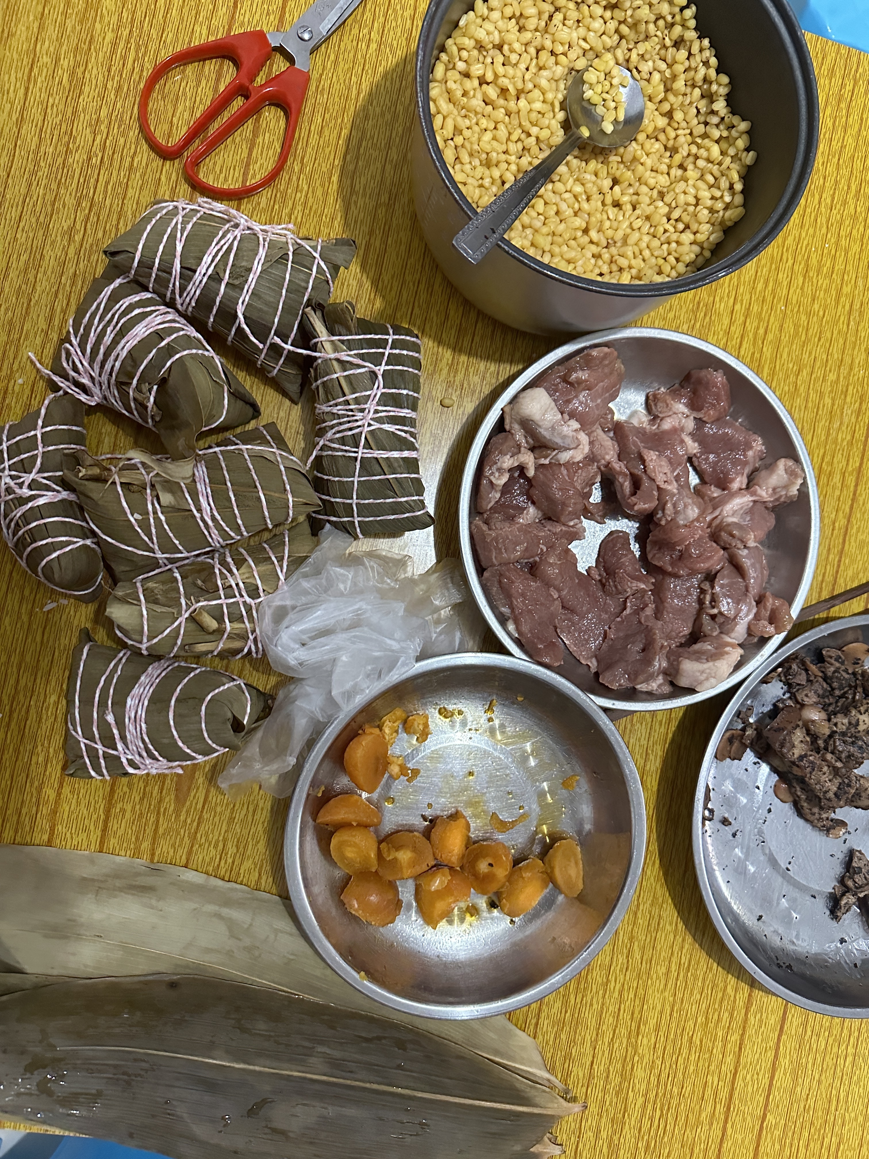 今天帮我外公和大舅他们包粽子