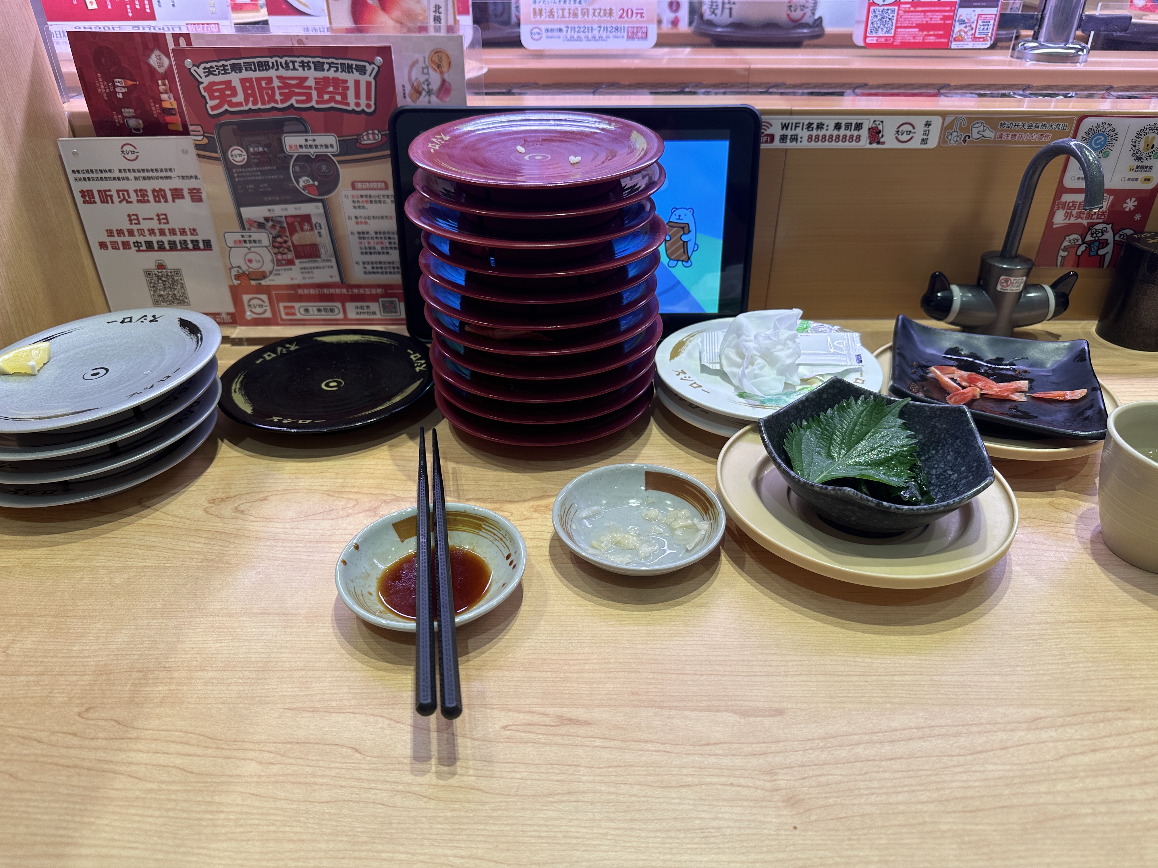 以下是我的战绩,盘子堆了一小桌,旁边的漂亮小姐姐都惊呆了我一个人的战斗力这么强