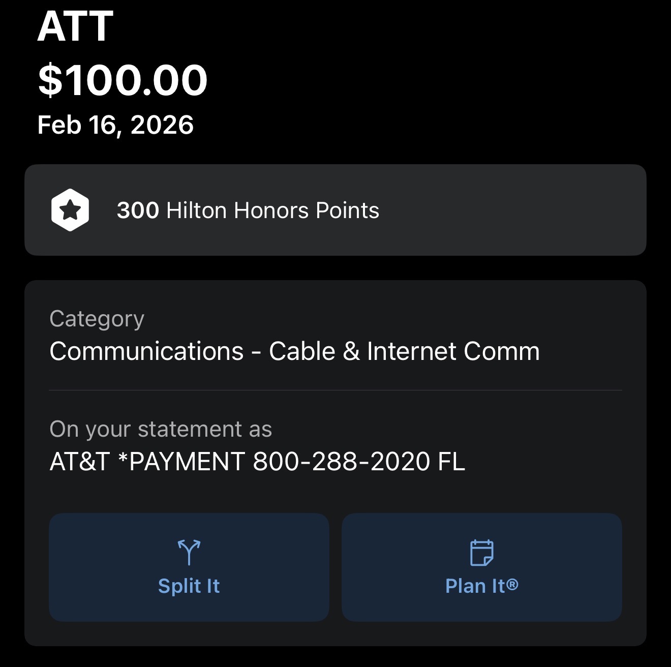 更新一下,Amex未登陆支付66.66成功触发了Fiber 55-50,账单显示ATT,但没触发wireless 65-50。之前登陆支付的66一个offer都没触发,收款方显示ATT CONS PHN PMT SW PDCC。